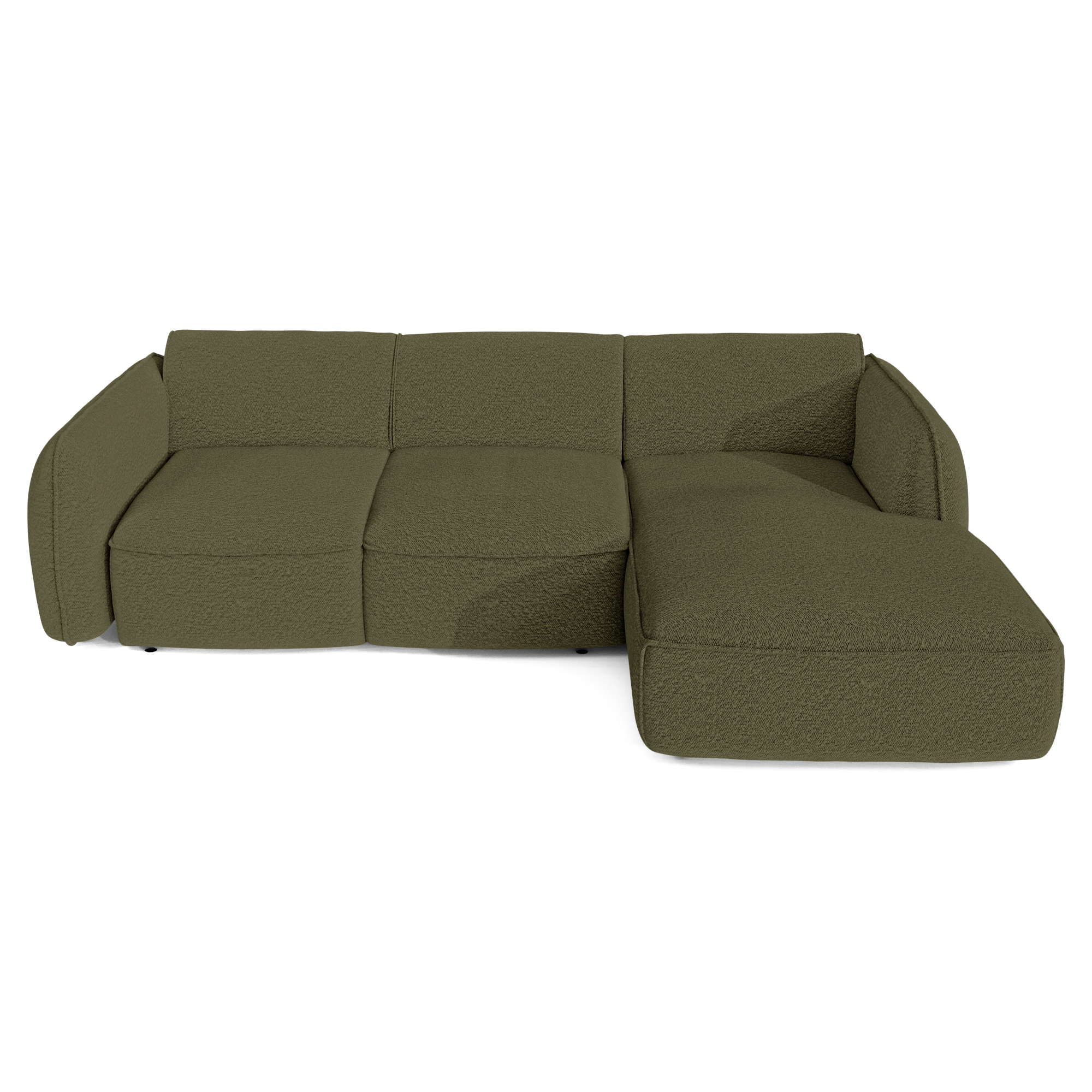4-zits rechter hoekbank in olijfgroene bouclette stof