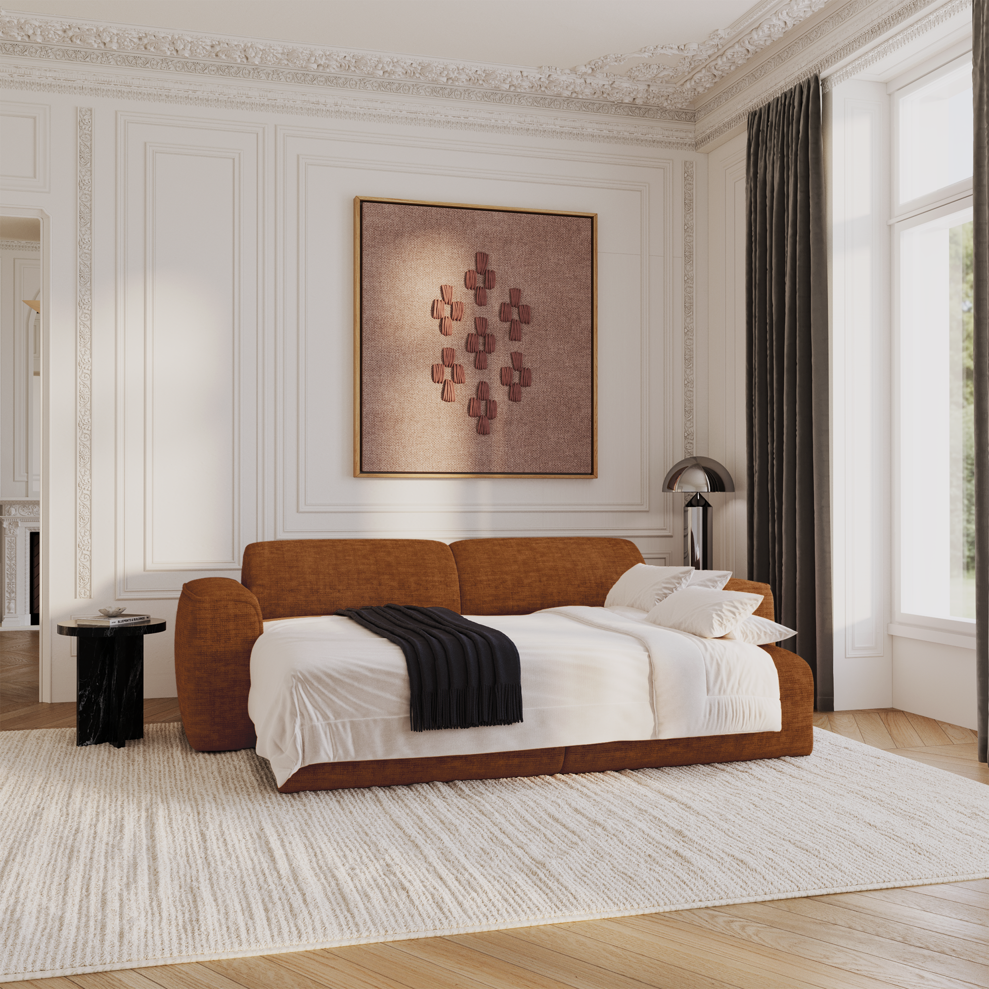 4-zits slaapbank in bruin, gestructureerd fluweel