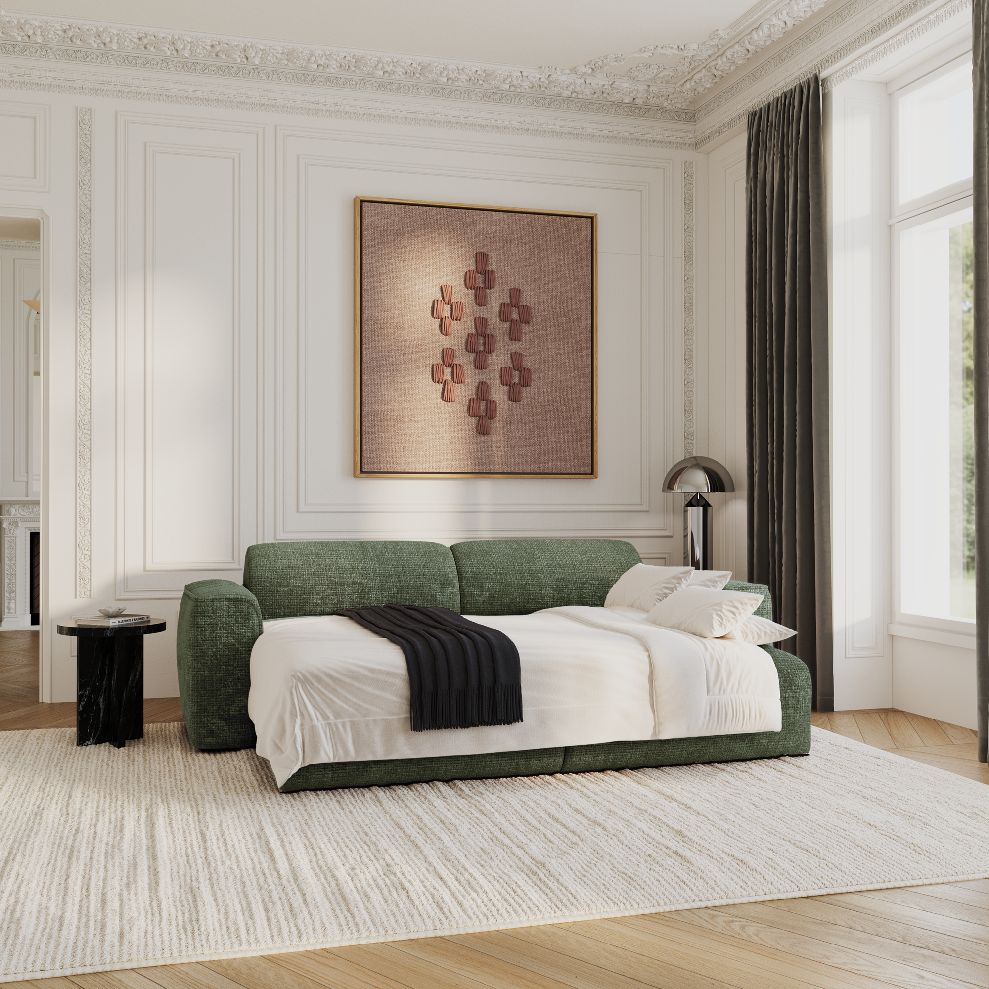 4-zits slaapbank in smaragdgroen reliëffluweel