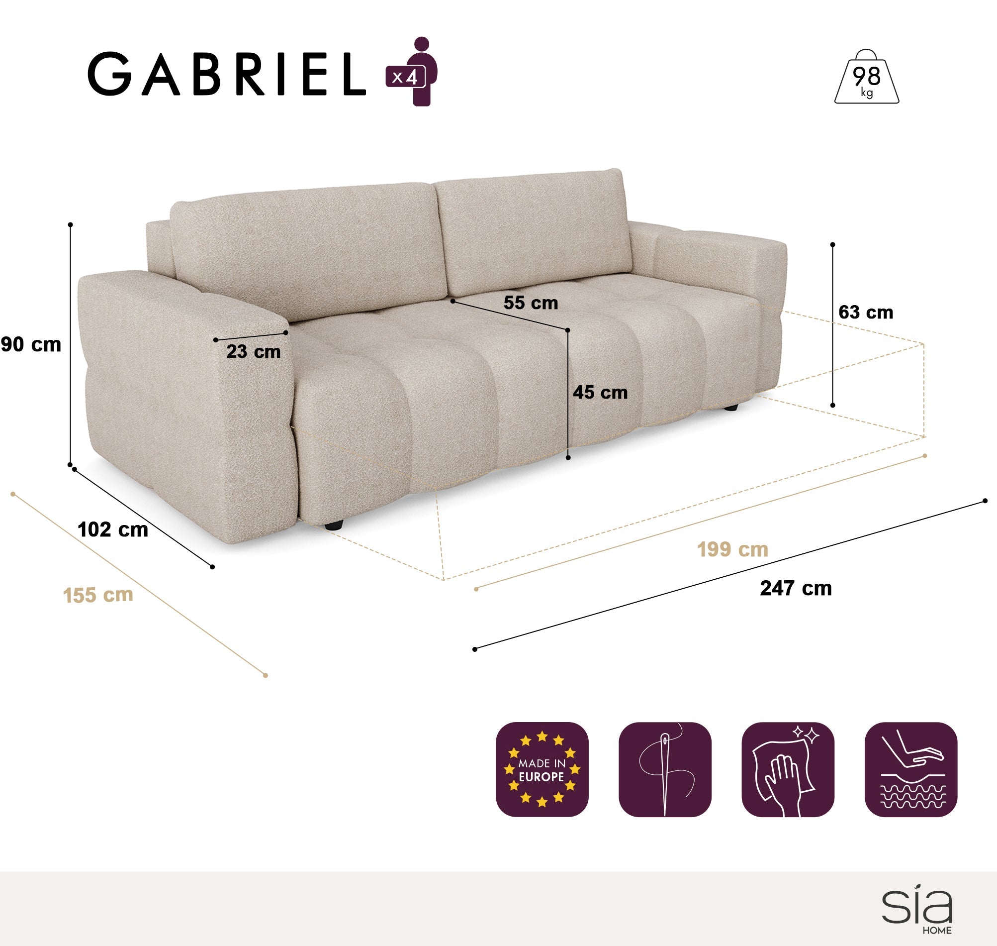 De design rondingen van de slaapbank Gabriel maken er een pronkstuk van. Hij is ruim en trendy en biedt je absoluut comfort en de ideale look om je interieur te perfectioneren. Onze collecties zijn geïnspireerd door de unieke creatieve wereld van de Zweedse oprichter Sonja Ingegerd Andersson. SIA is een wereldwijde referentie in decoratie en meubilair; elk product draagt onze expertise en unieke details.