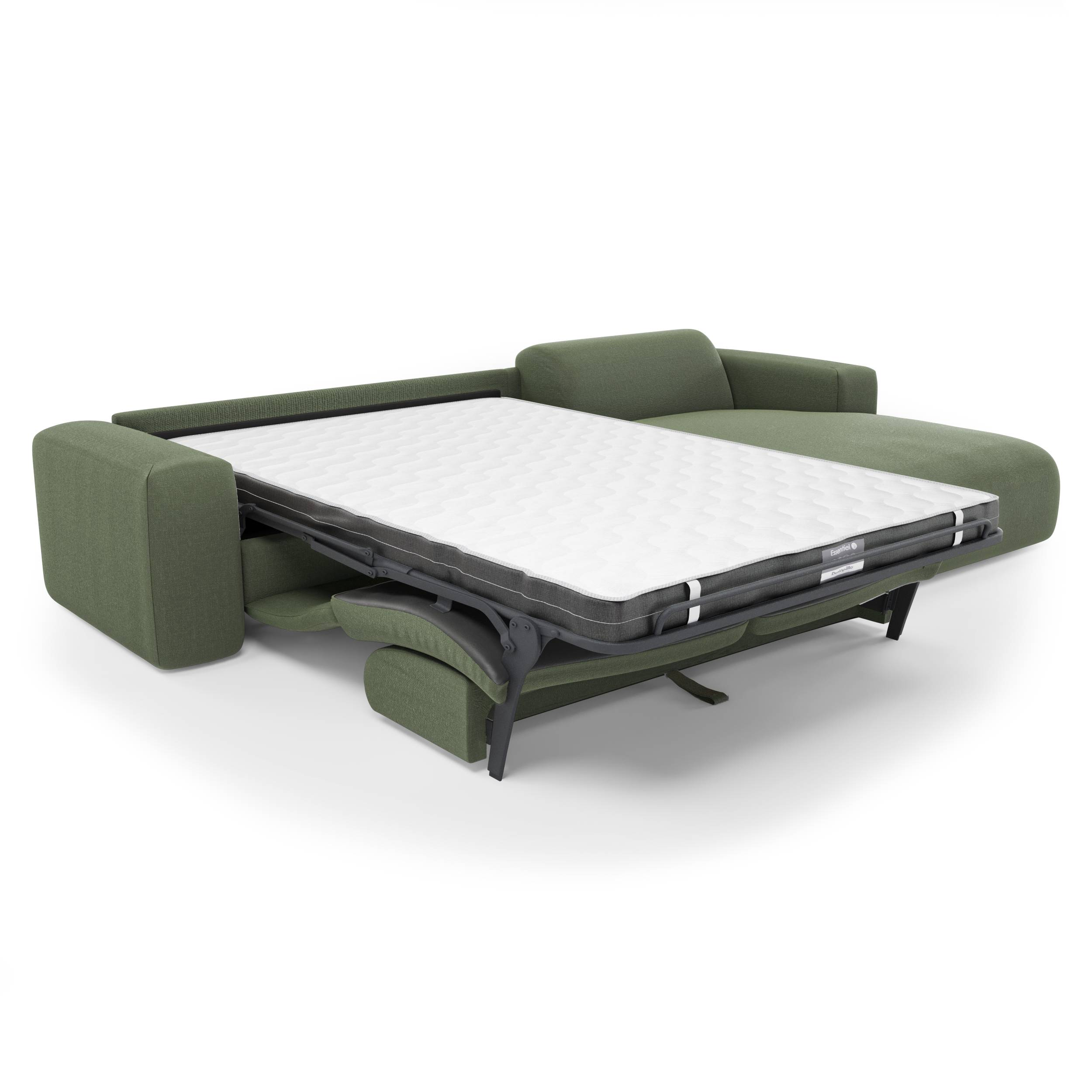 - Dunlopillo-matras: 14cm dik (10cm N27 kg/m³ schuim, 1cm 50 kg/m³ traagschuim, 2cm 300g watten vastgenaaid in hoes, 1cm hoes)