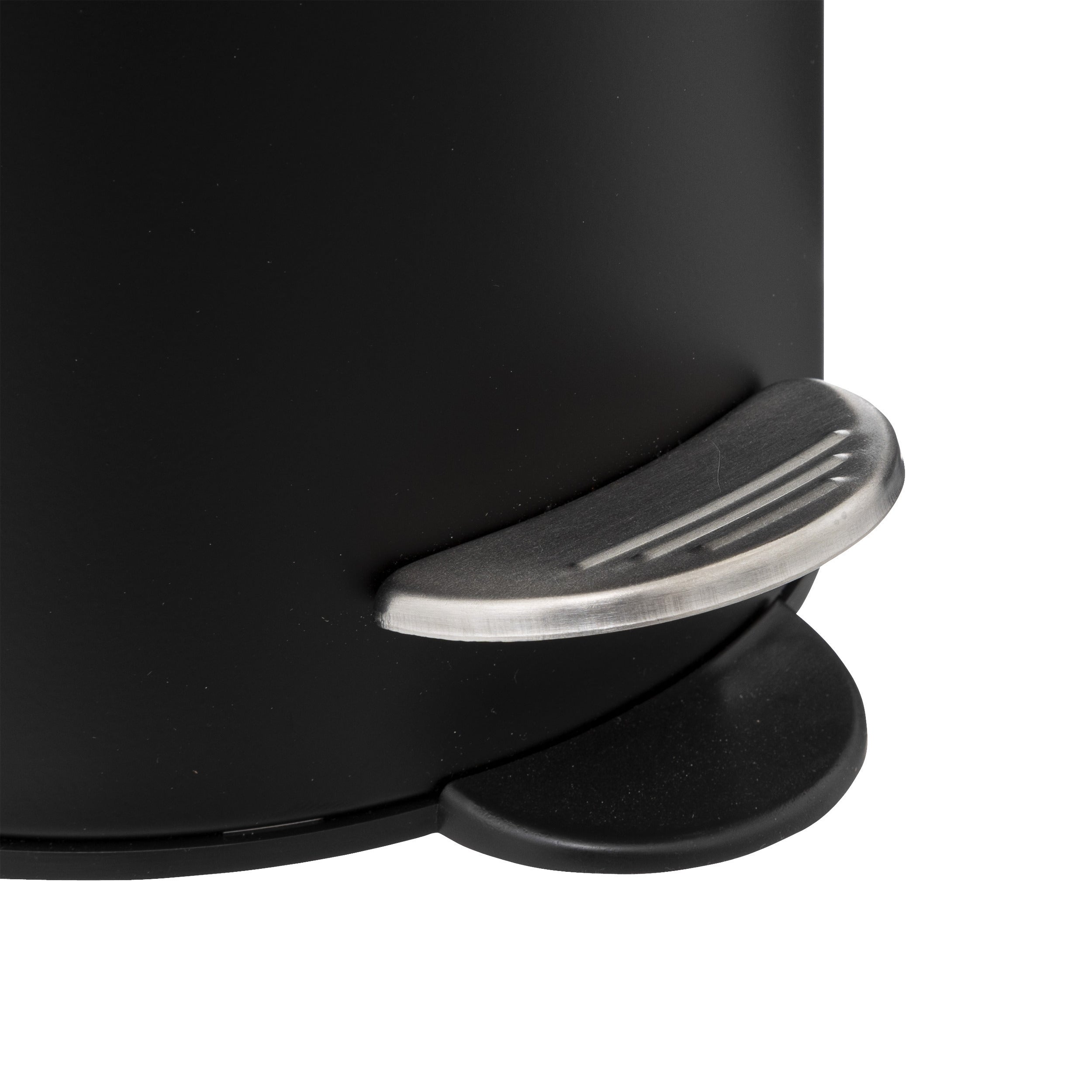 5Five Prullenbak/pedaalemmer in de kleur zwart, gemaakt van metaal met inhoud 3 liter en afmetingen 17 x 23 cm. Geschikt voor badkamer en toilet. Deze kleine pedaalemmers hebben een uitneembare binnenbak en een soft close systeem.