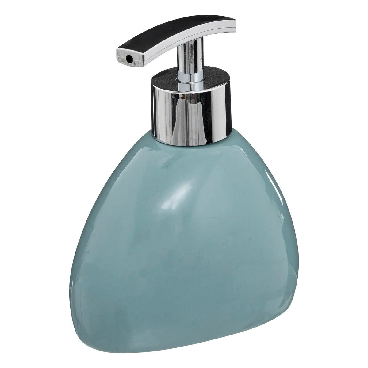 Zeeppompje/zeepdispenser Silk, gemaakt van polyresin/kunststeen in de kleur ijsblauw met een glanzende buitenzijde en een rvs pompje. De vloeibaar zeep dispenser heeft een stijlvol en compact ontwerp. Ideaal voor in de badkamer of het toilet. Afmetingen: ca. 10 x 12.5 cm. Inhoud: ca. 300 ml. Serienaam: Silk.