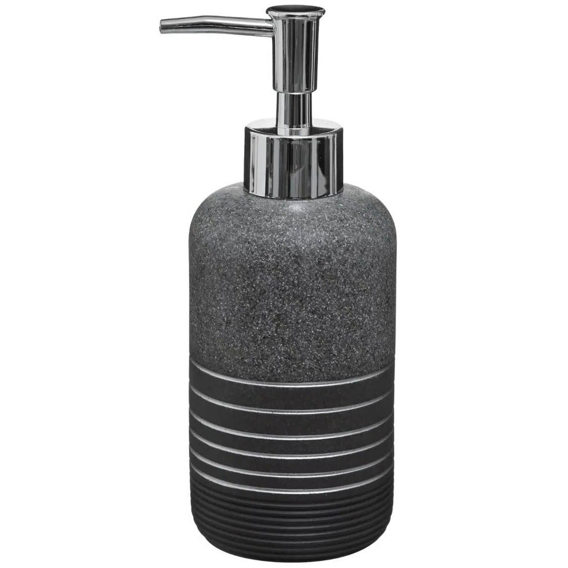 Five zeeppompje/zeepdispenser van kunststeen. De steenstructuurcoating geeft de dispenser een luxe uitstraling. Ideaal voor in de badkamer of het toilet. Afmeting: ca. 6,5 x 19 cm. Inhoud: 300 ml. Materiaal: plastic en bamboe.