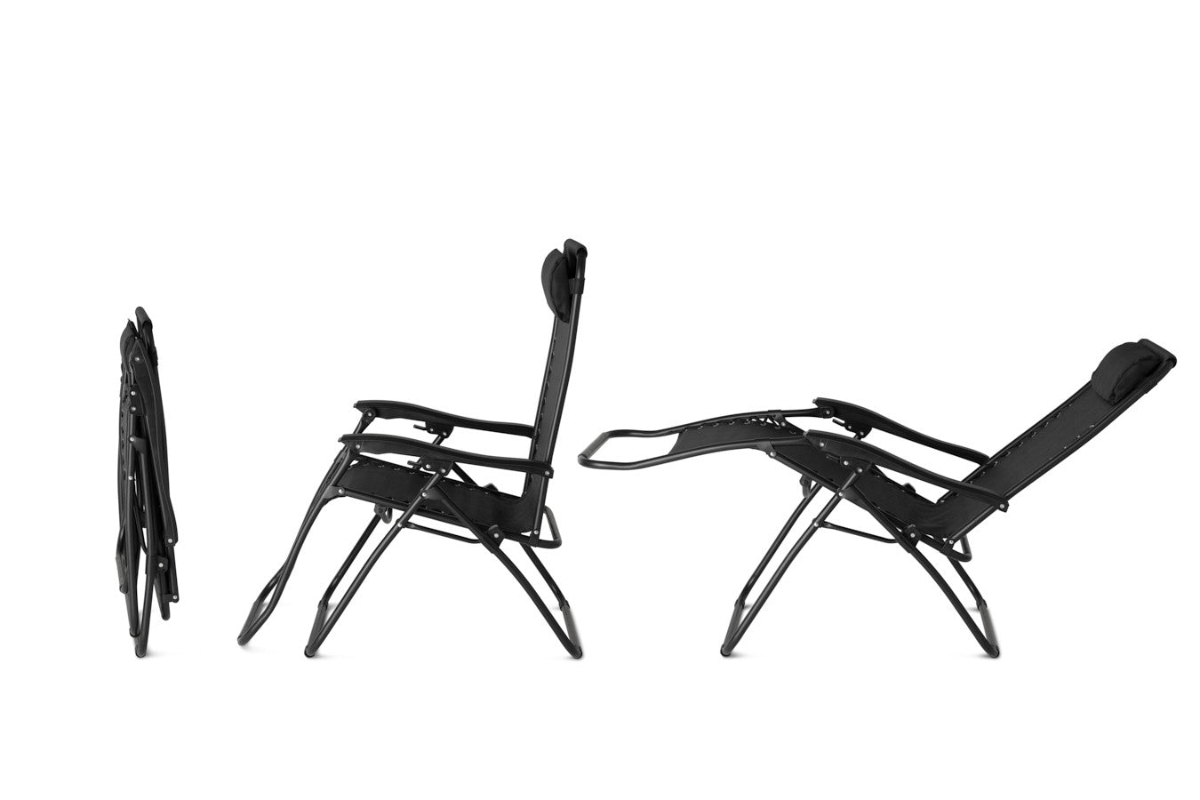 - De ligstoel heeft een stalen frame en een textilene zitting