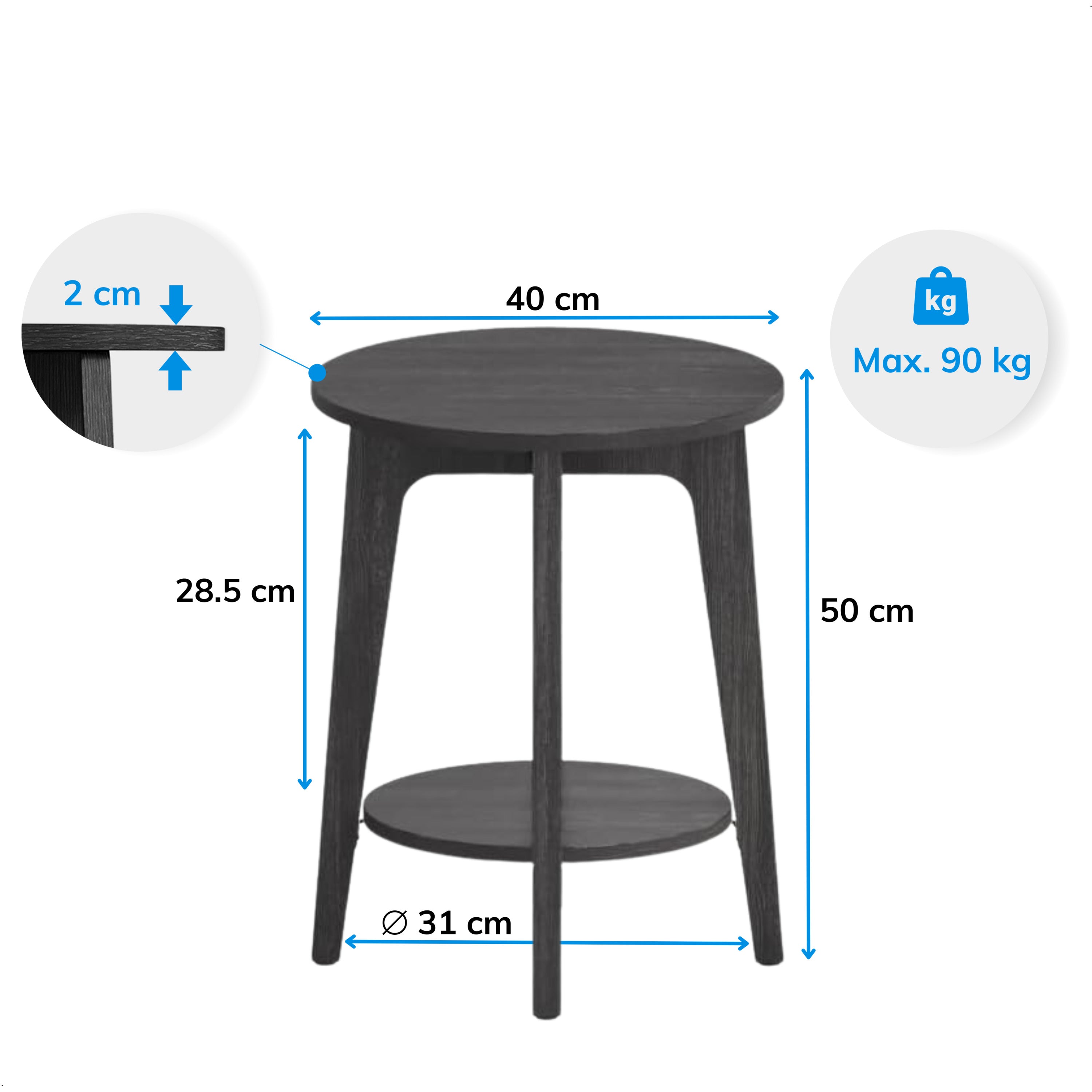 ACAZA Bijzettafel - Nachtkastje - Kleine Salontafel - Zwart - 50x40x40 cm - Banktafel
