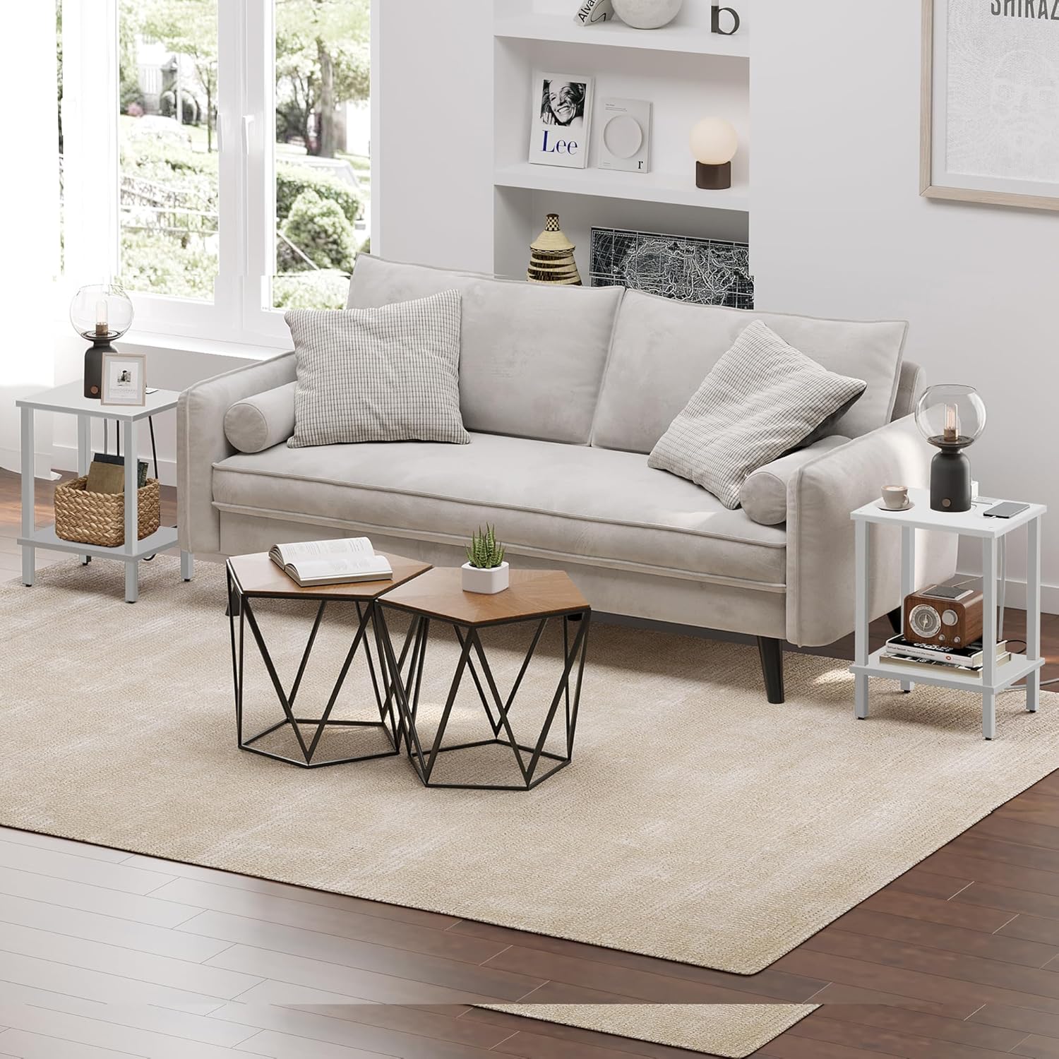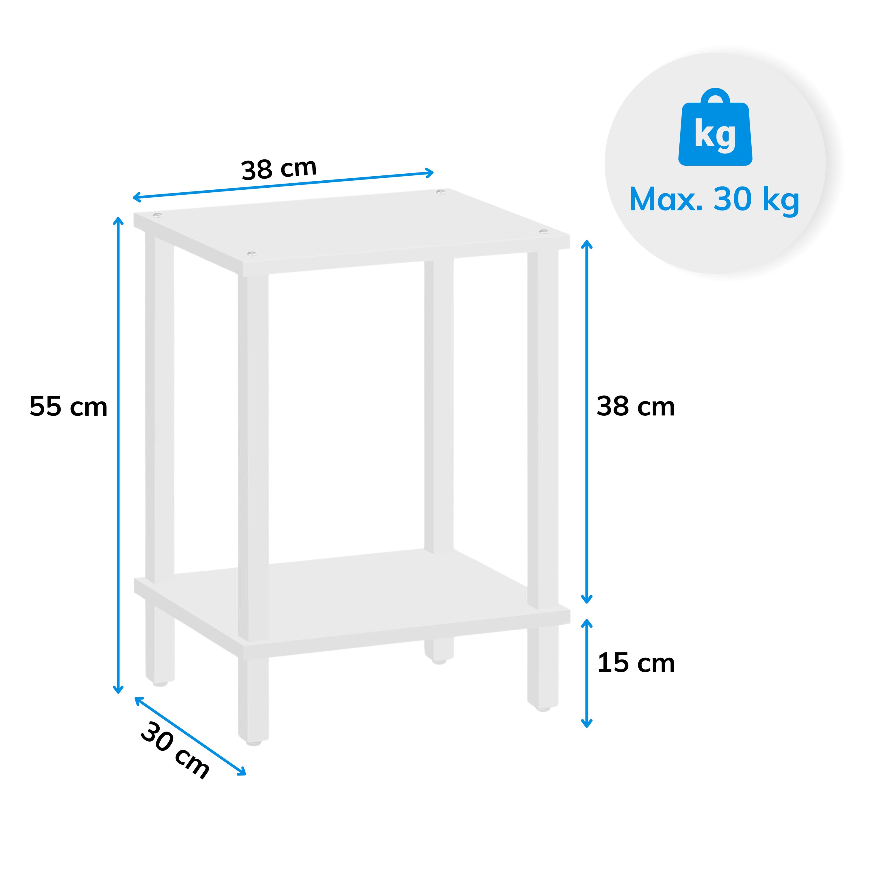 ACAZA Bijzettafel - Tafeltje - Wit - 38 x 30 x 55 cm (L x B x H) - Nachtkastje - Tafel Industrieel - Banktafel - Bijzettafels - Bijzettafel wit - Bijzettafel hout - Houten Bijzettafel