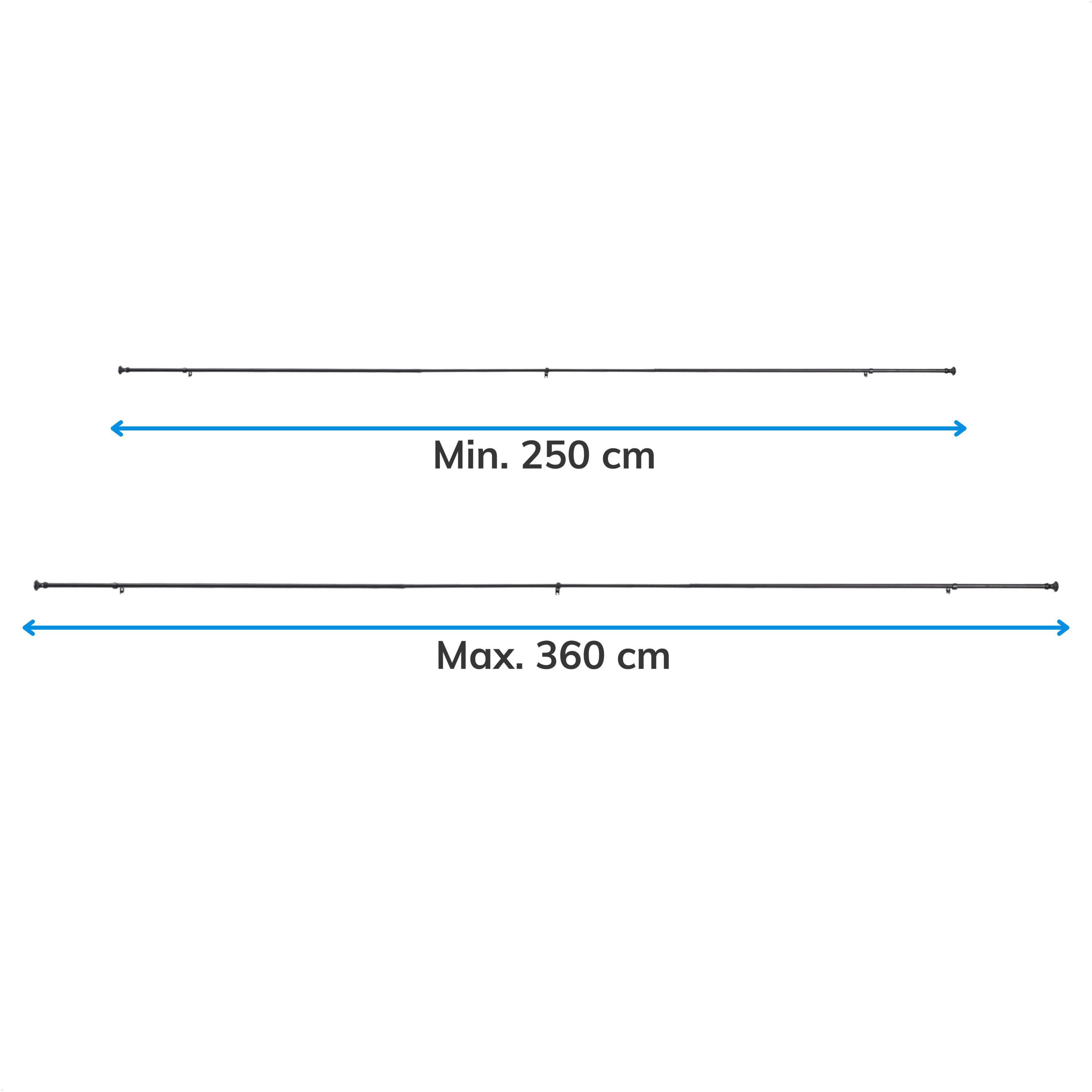 Hebben jouw vensters geen standaard afmetingen of heb je verschillende maten van ramen? Dankzij deze uitschuifbare gordijnstangen hoef je je geen zorgen meer te maken of je alles wel goed afgemeten hebt. Je kan de roede namelijk heel gemakkelijk aanpassen van 250 cm tot 360 cm. Hang die gordijnen snel op en breng warmte en sfeer in huis! (diameter 19 mm)Voordelen:- Uitschuifbaar naar de gewenste lengte- Robuust, ook geschikt voor zware gordijnen- Duurzaam, roestvrij staal- Super gemakkelijke montage