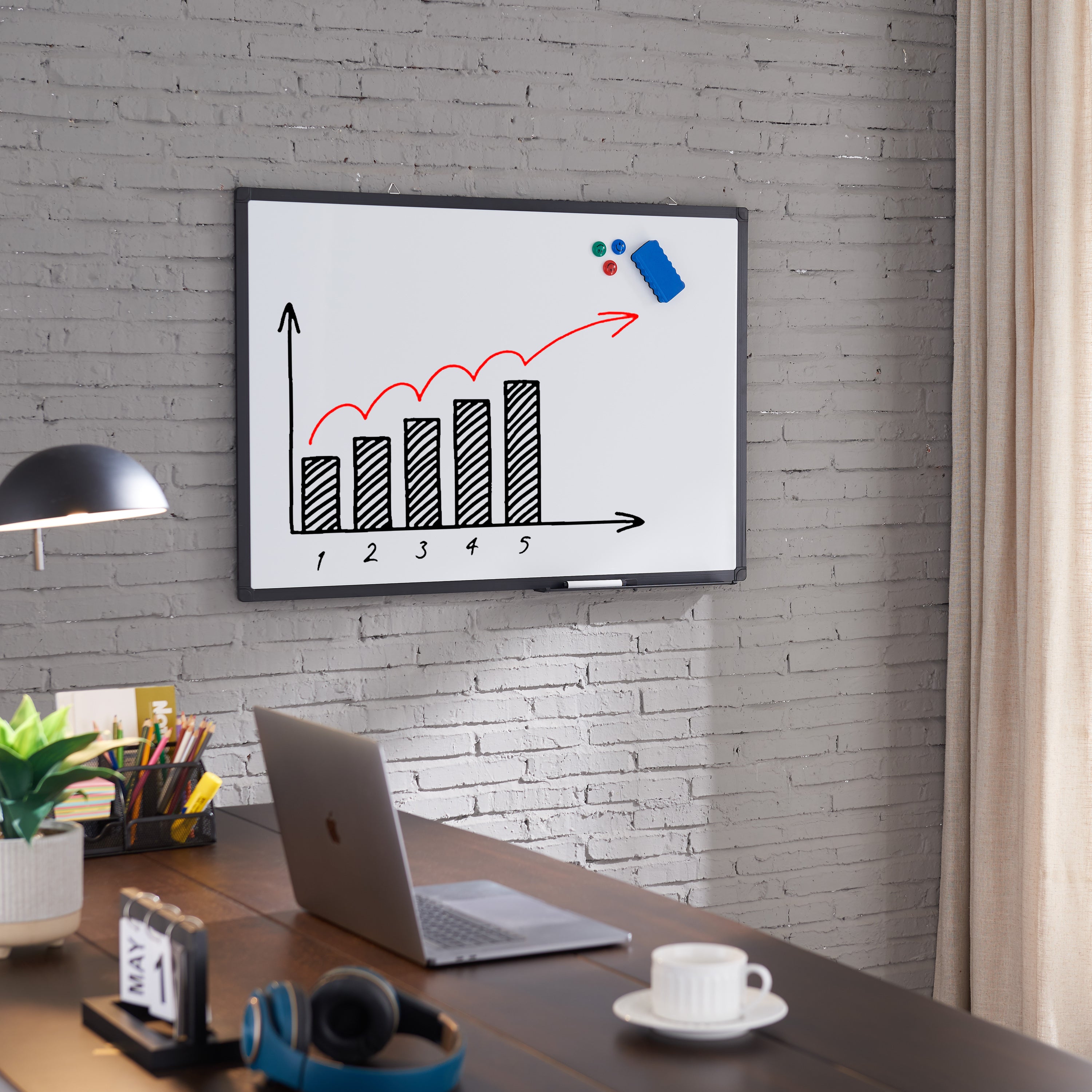 Op dit kwalitatieve, magnetische whiteboard van ACAZA kan je jouw to-do lijstjes ophangen, een grafiekje tekenen of snel iets opschrijven. Het bord is voorzien van een goot om jouw stiften of wisser op te plaatsen. Je krijgt er bovendien een bordwisser, bevestigingsmateriaal én een stift gratis bij geleverd. Je kan het bord ophangen via de ophanghaakjes / clips of via de hoekwanden.