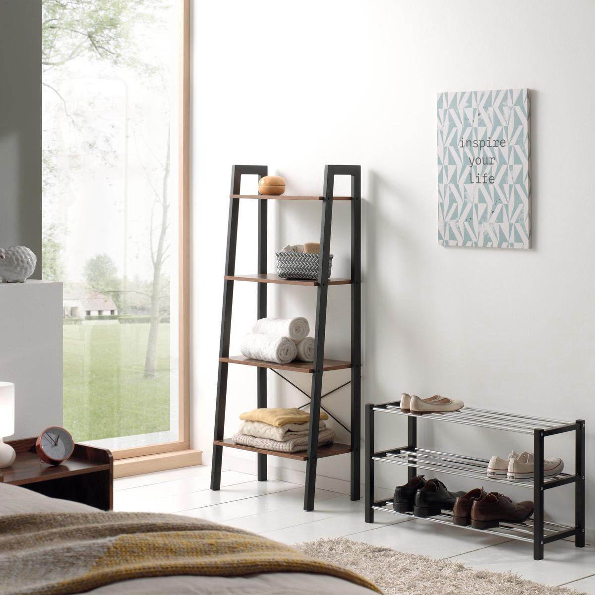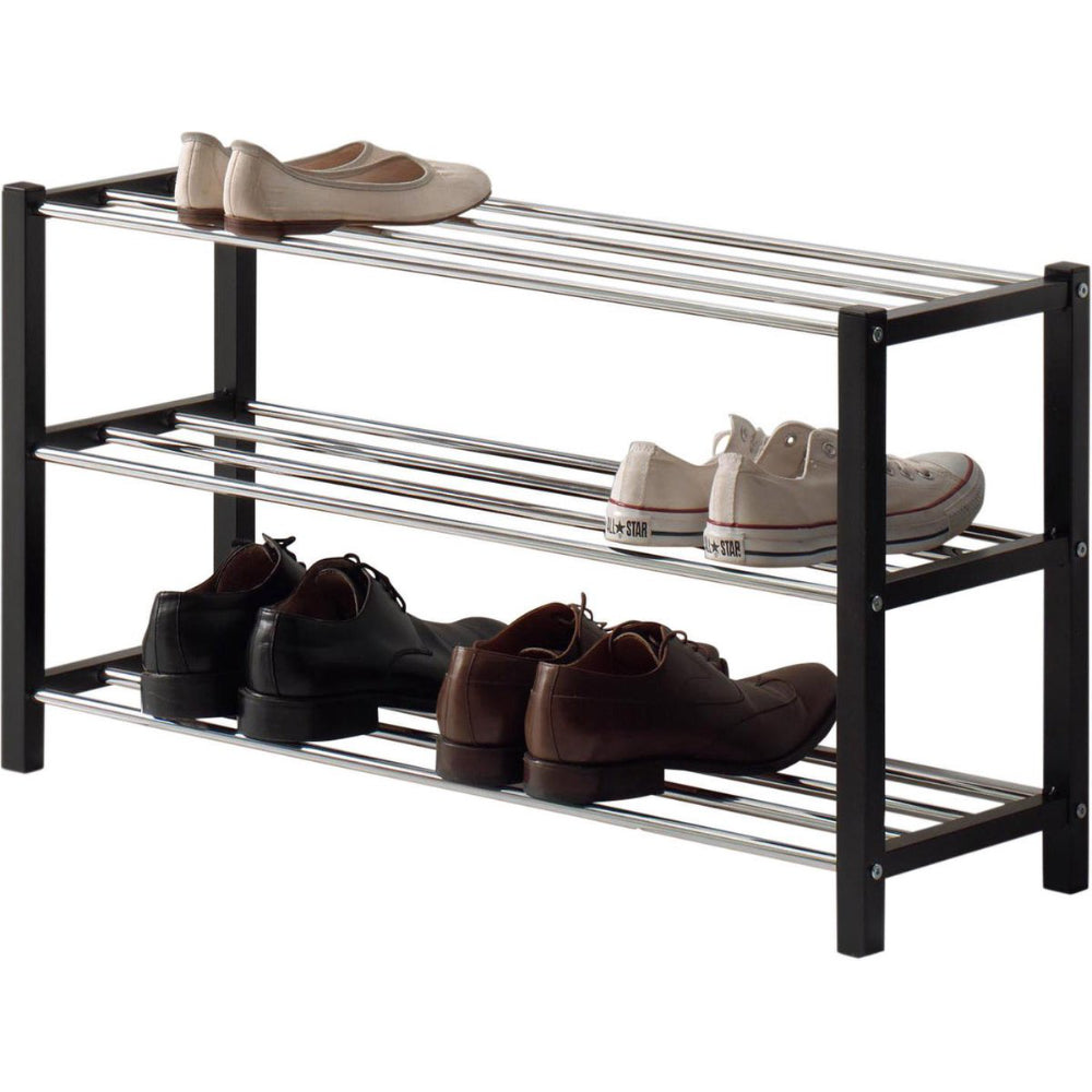 Dankzij dit stevige, metalen schoenenrek creëer je terug orde in jouw huis. Op de 3 niveaus kan je tot wel 12 paar schoenen opbergen.