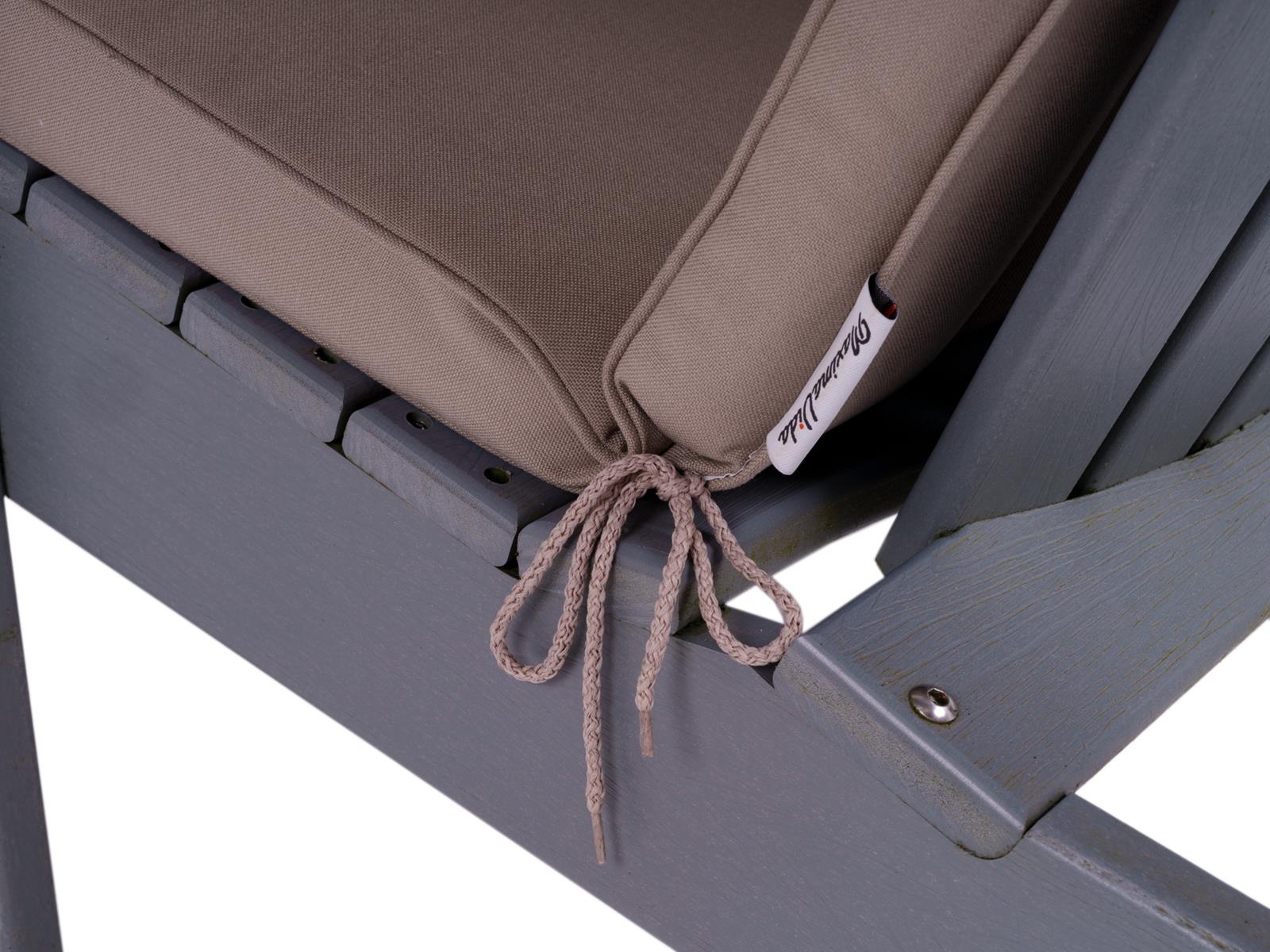 Ergonomisch ronde rugleuning en zitvlak, brede armleuningen, licht achteroverhangend. Typische kenmerken die het zitten in een originele Adirondackchair laten voelen als een warm bad.