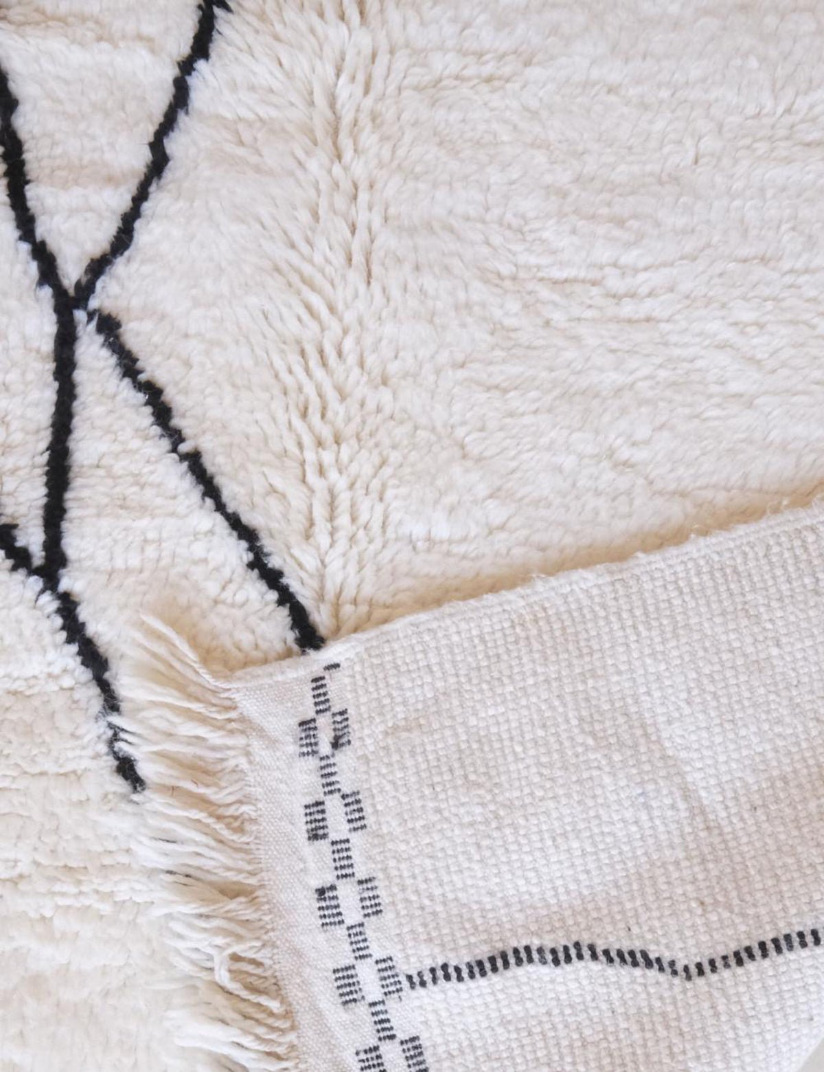 Elk tapijt wordt gemaakt door de vrouwen van de Berberstammen, volgens een voorouderlijke kennis die van generatie op generatie is doorgegeven. Het gebruikte grondstof is natuurlijke wol van een soort schapen die bekend staan om hun kleine formaat en hoge weerstand.