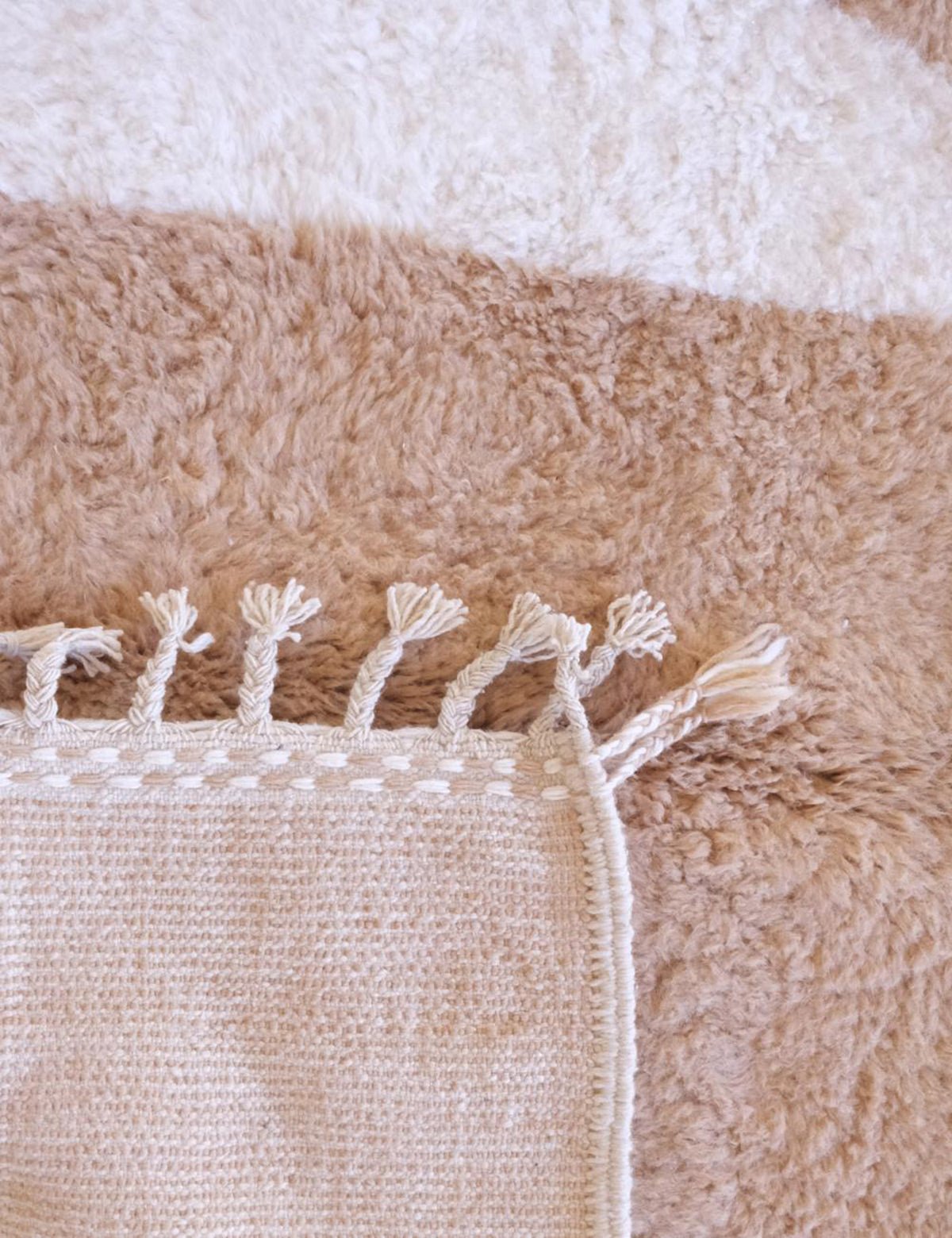 Elk tapijt wordt gemaakt door de vrouwen van de Berberstammen, volgens een voorouderlijke kennis die van generatie op generatie is doorgegeven. Het gebruikte grondstof is natuurlijke wol van een soort schapen die bekend staan om hun kleine formaat en hoge weerstand.