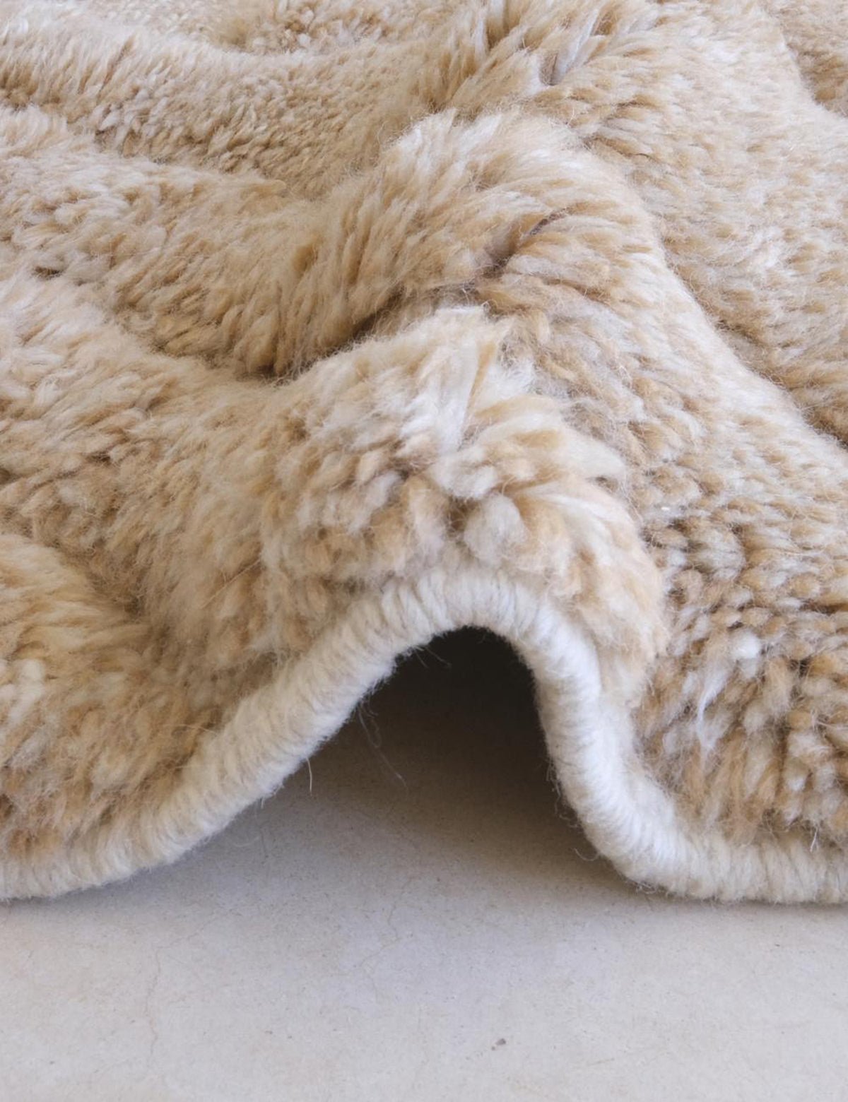 Elk tapijt wordt gemaakt door de vrouwen van de Berberstammen, volgens een voorouderlijke kennis die van generatie op generatie is doorgegeven. Het gebruikte grondstof is natuurlijke wol van een soort schapen die bekend staan om hun kleine formaat en hoge weerstand.