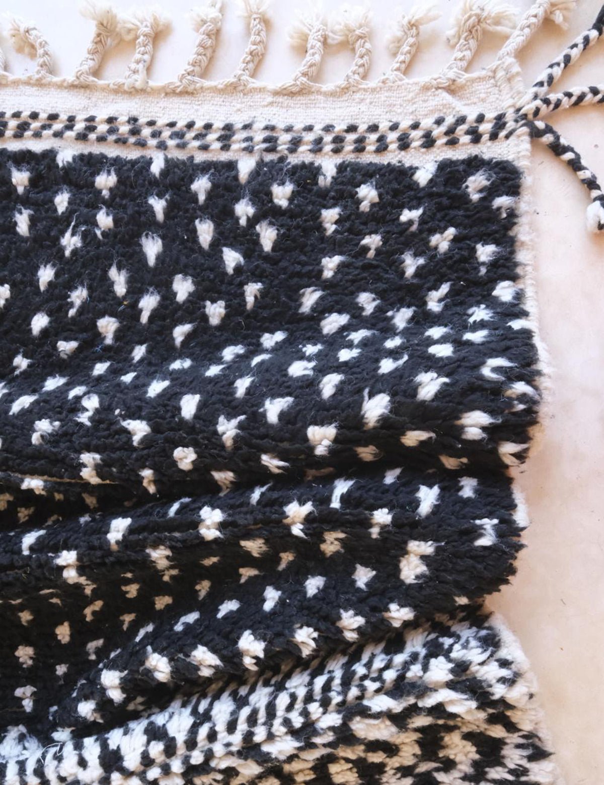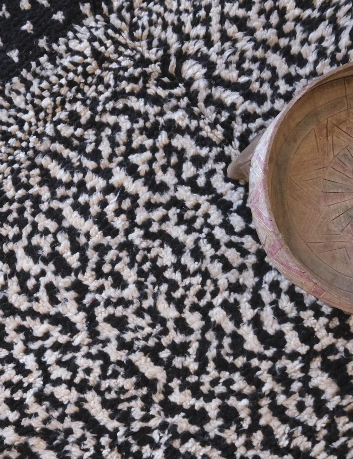 Elk tapijt wordt gemaakt door de vrouwen van de Berberstammen, volgens een voorouderlijke kennis die van generatie op generatie is doorgegeven. Het gebruikte grondstof is natuurlijke wol van een soort schapen die bekend staan om hun kleine formaat en hoge weerstand.