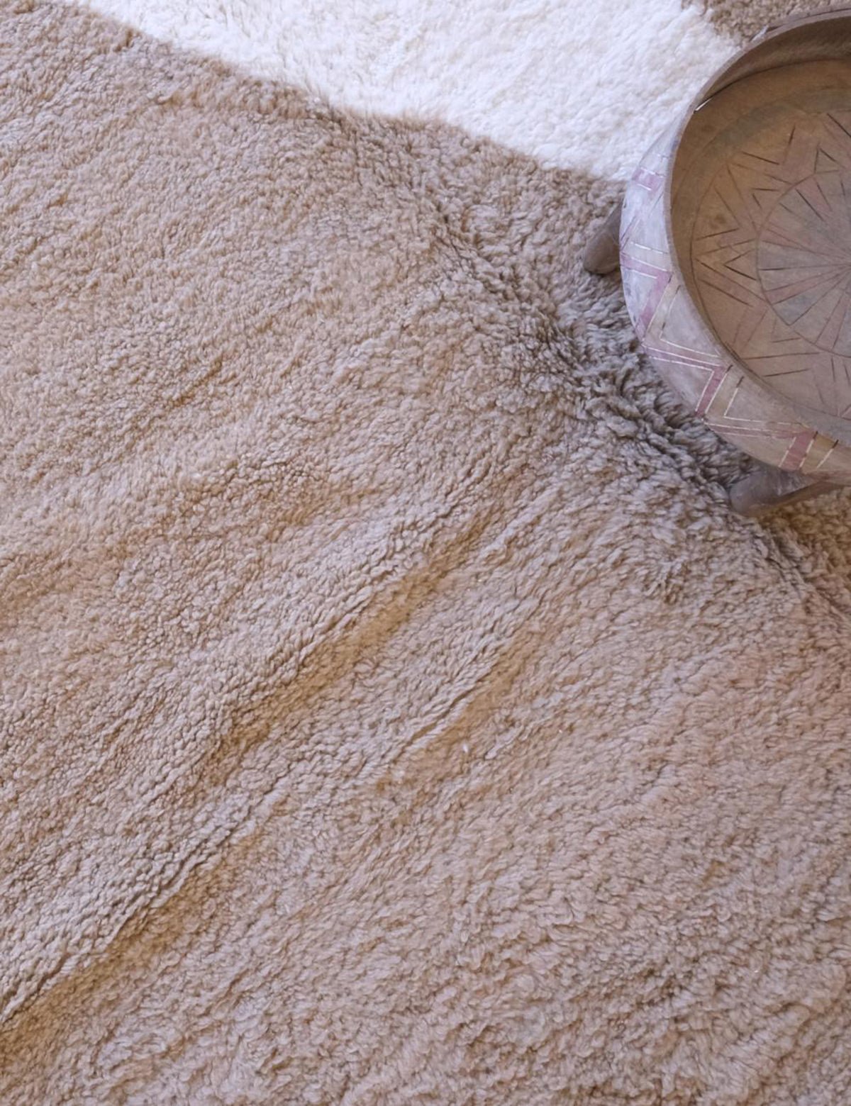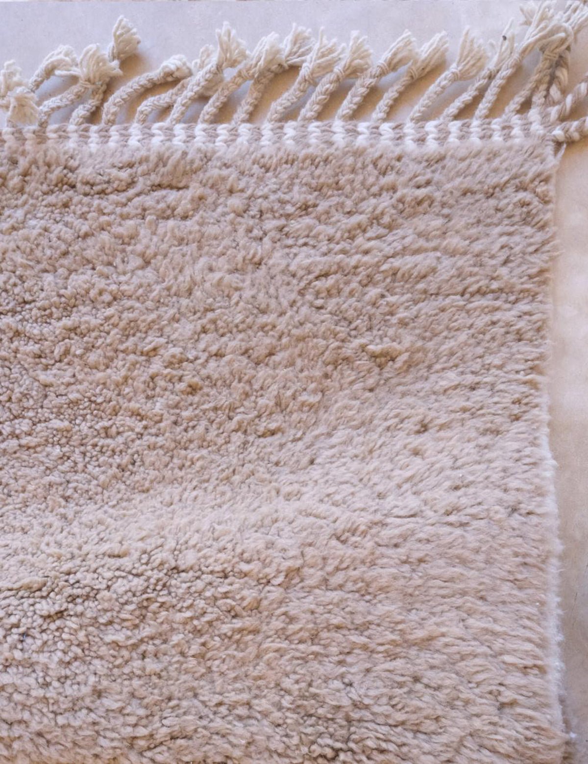 Elk tapijt wordt gemaakt door de vrouwen van de Berberstammen, volgens een voorouderlijke kennis die van generatie op generatie is doorgegeven. Het gebruikte grondstof is natuurlijke wol van een soort schapen die bekend staan om hun kleine formaat en hoge weerstand.
