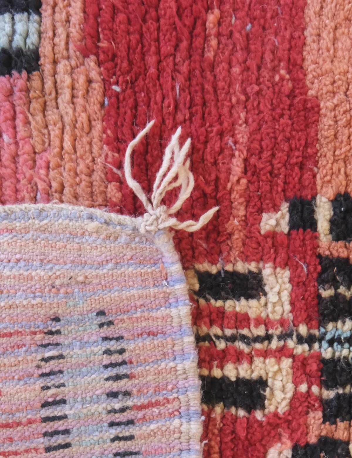 Elk tapijt wordt gemaakt door de vrouwen van de Berberstammen, volgens een voorouderlijke kennis die van generatie op generatie is doorgegeven. Het gebruikte grondstof is natuurlijke wol van een soort schapen die bekend staan om hun kleine formaat en hoge weerstand.