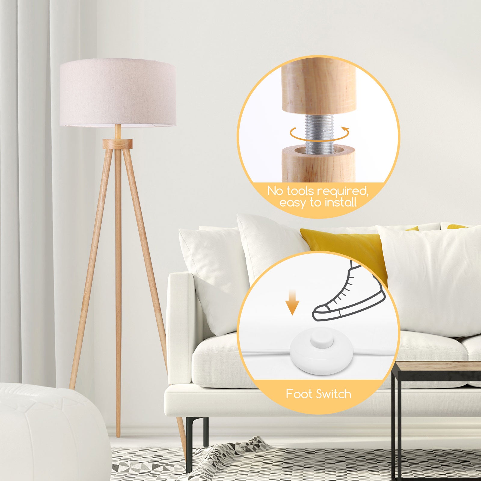 - Deze houten vloer driepoot lamp heeft een handige voetschakelaar en is gemakkelijk in te schakelen of uit te schakelen.