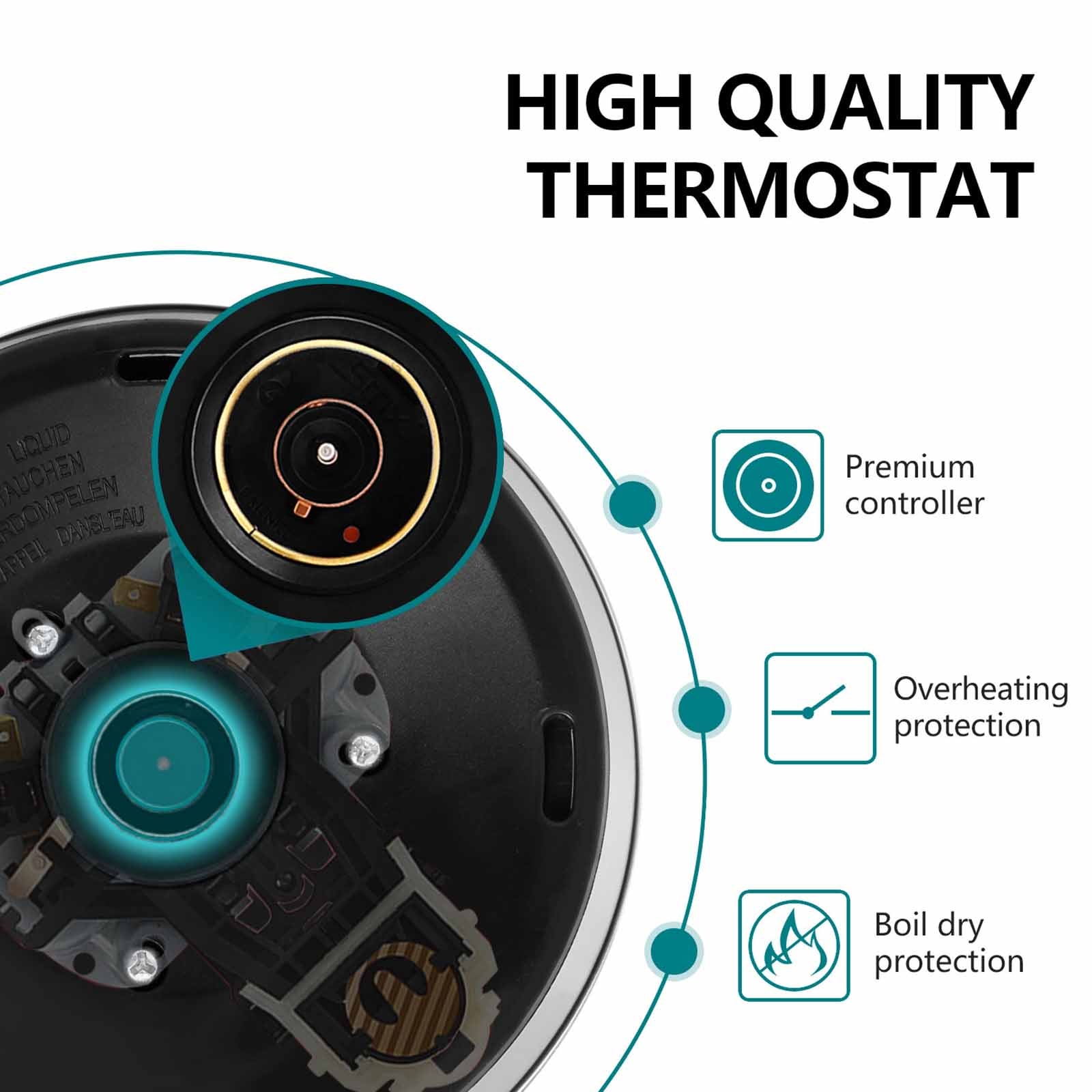 KrachtigDankzij het krachtige verwarmingselement met een vermogen van 2200 watt bereikt de inhoud binnen 4 minuten de kooktemperatuur. Met zijn 1,2 liter is de Aiden zowel thuis als op kantoor te gebruiken.