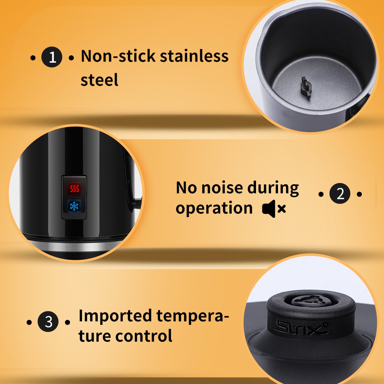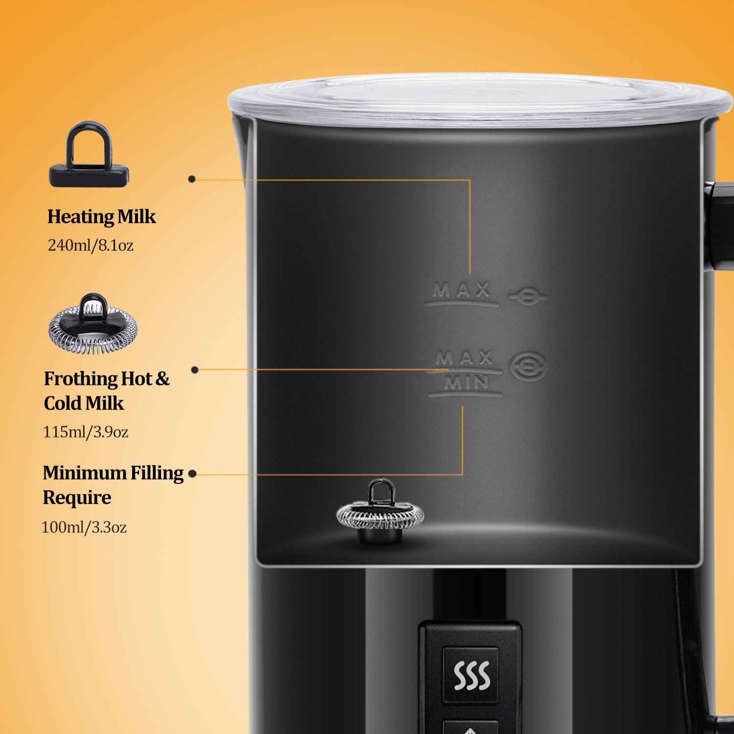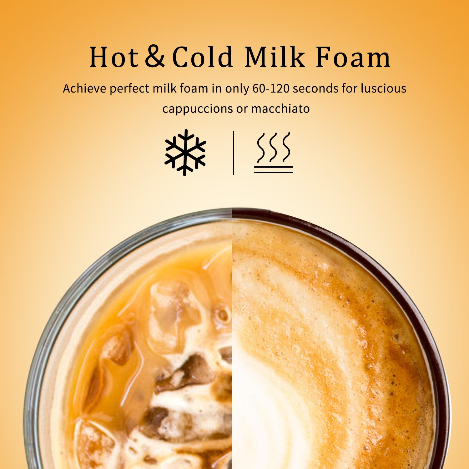 Met een motor van 500W kan de melkopschuimer de melk snel opschuimen of opwarmen in 75-100 seconden, zodat je niet te lang hoeft te wachten. Het wordt geleverd met een transparante deksel, zodat je het proces gemakkelijk kunt observeren.