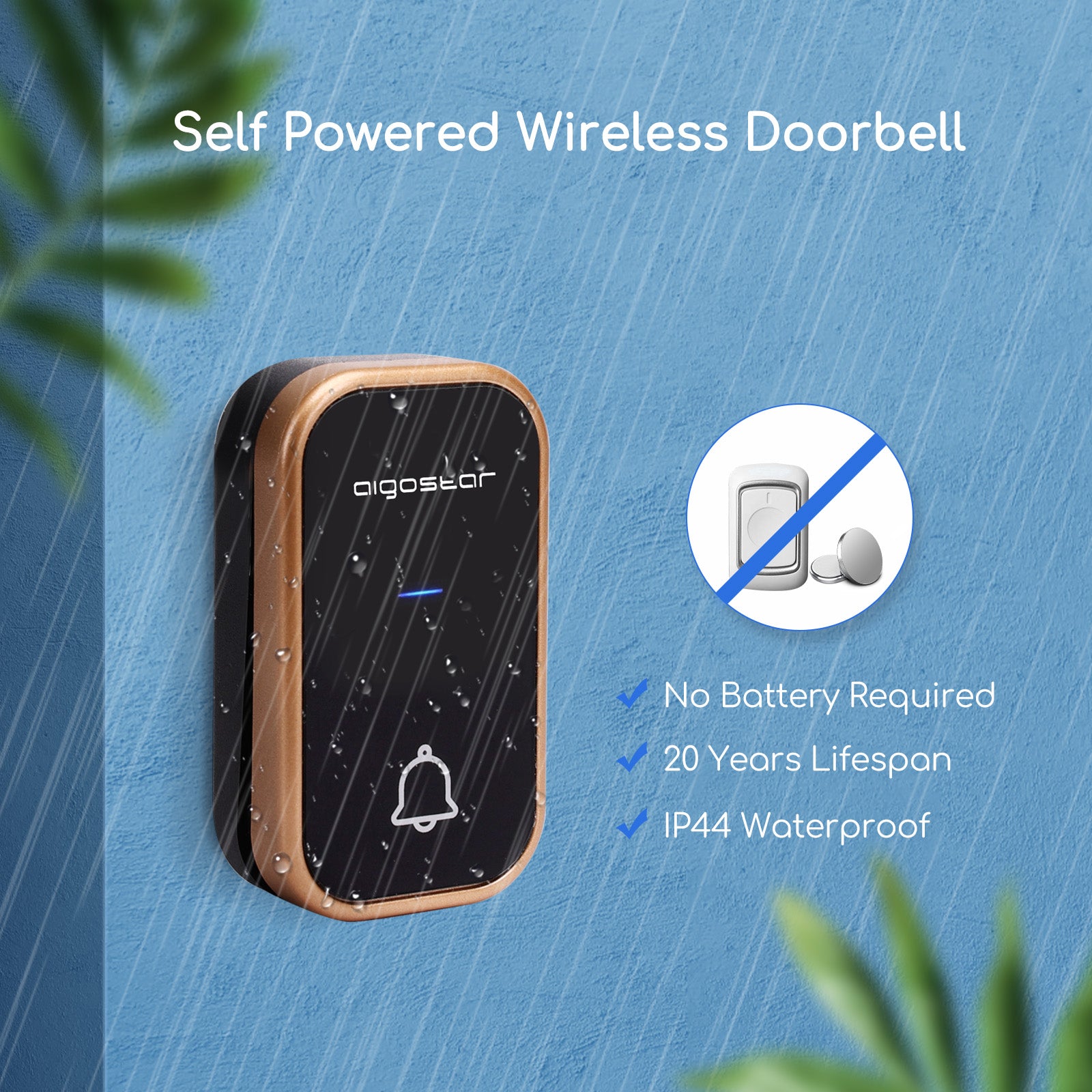 Aigostar draadloze deurbel, zelfaangedreven deurbel
