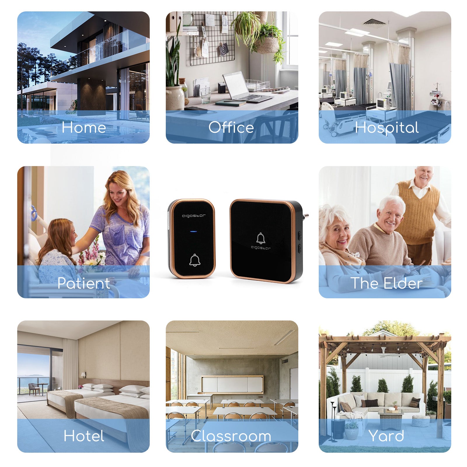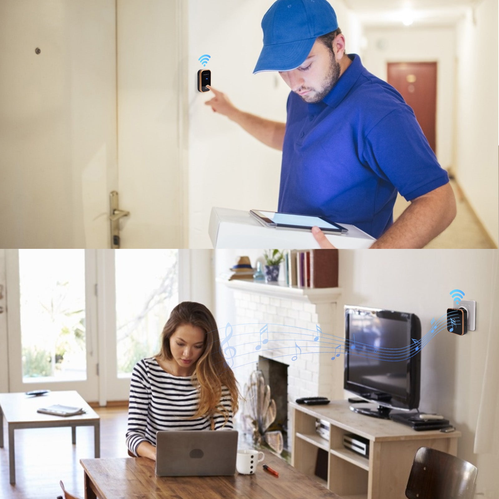 【Sterk signaal】de deurbel heeft een sterke doordringingskracht en kan een helder signaal van 150m naar een huis of bedrijf in een open ruimte sturen. Waar je ook bent, je zult nooit een bezoeker missen.