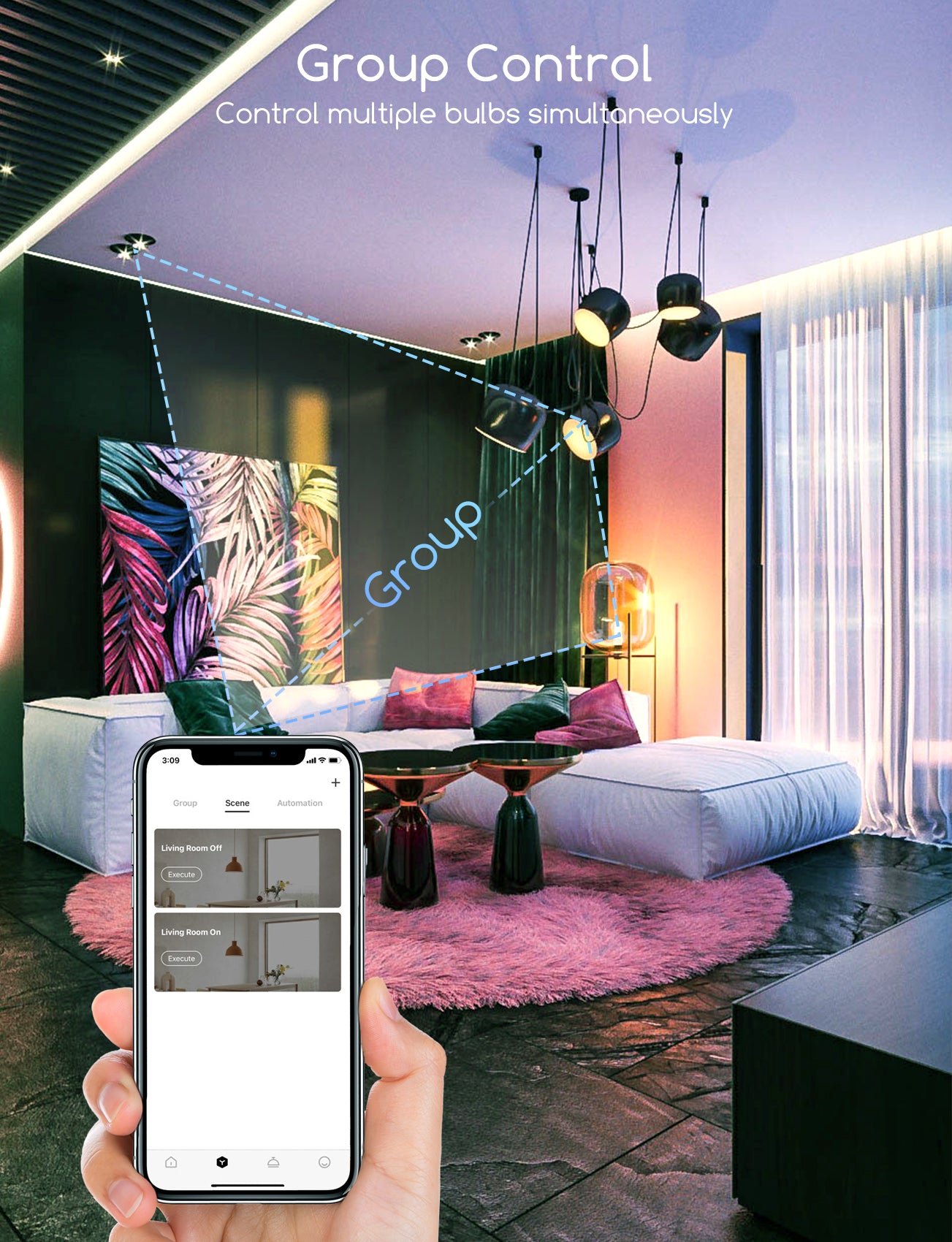 Stel eenvoudig de tijd in via de Aigosmart-app om de slimme lamp in en uit te schakelen wanneer je maar wil. Je kunt ook alle verlichting in je huis automatiseren met dezelfde set bedieningscommando's, waardoor je lampen overal in meerdere kamers op elk gewenst moment met één klik kunt bedienen.