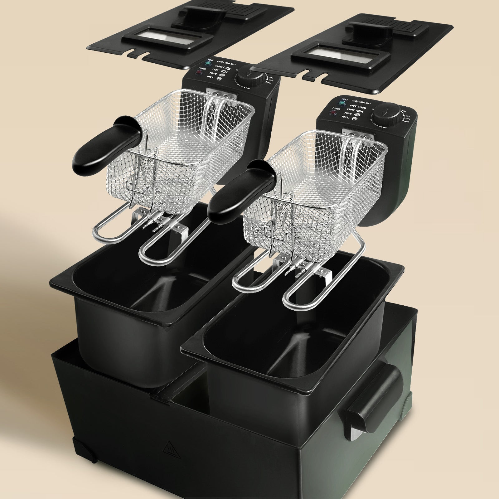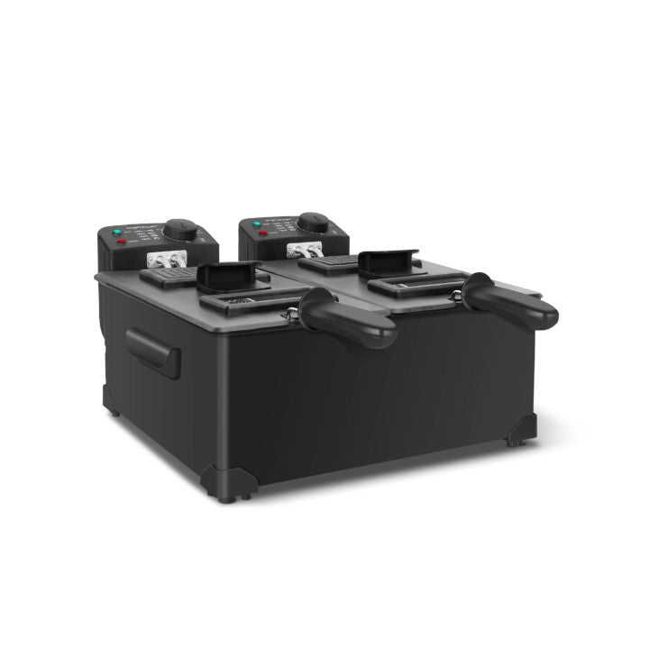 Dankzij de krachtige vermogen van 2x 1800 Watt is deze frituurpan snel op gewenste temperatuur. De temperatuur is eenvoudig in te stellen met een draaiknop tot 190°C.