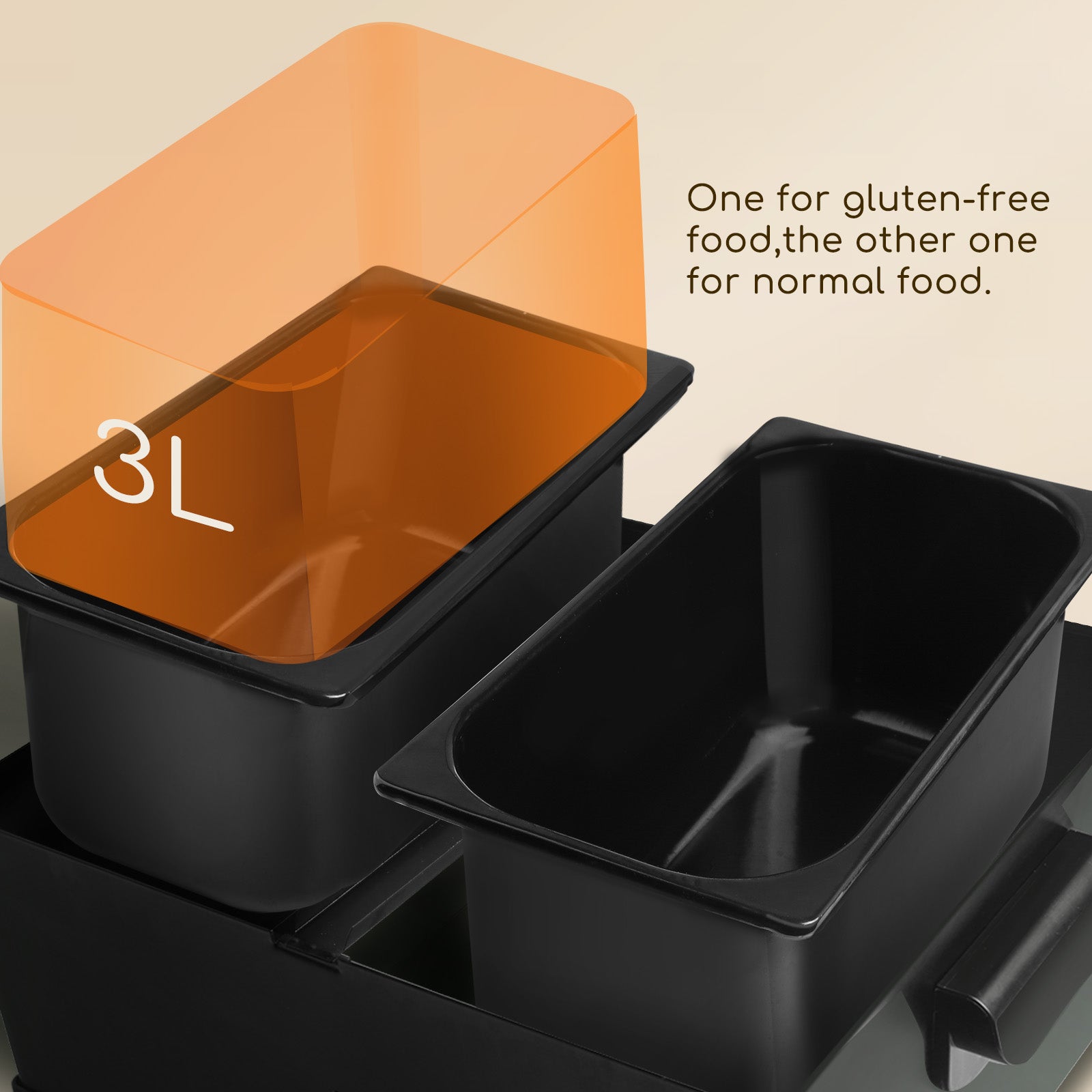 Met de Aigostar Feast 30VDW frituurpan bak je gemakkelijk tegelijkertijd friet en snacks voor de familie. Ook ideaal voor mensen die een gluten dieet volgen. Bak in een pan glutenvrij en bak in de andere pan de rest af.