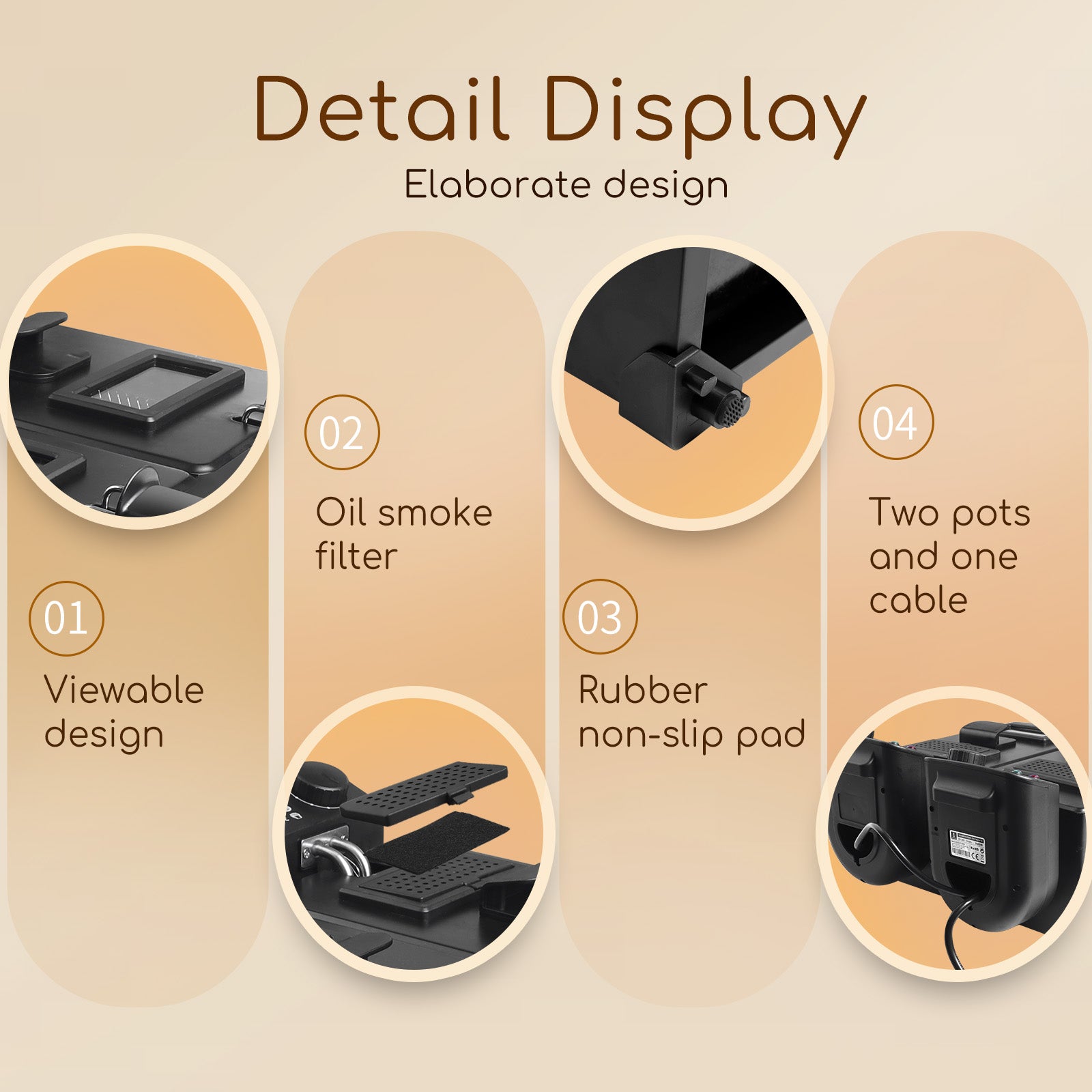 Deze frituurpan heeft geen koele wand, waardoor deze aan de buitenkant warm wordtKenmerken