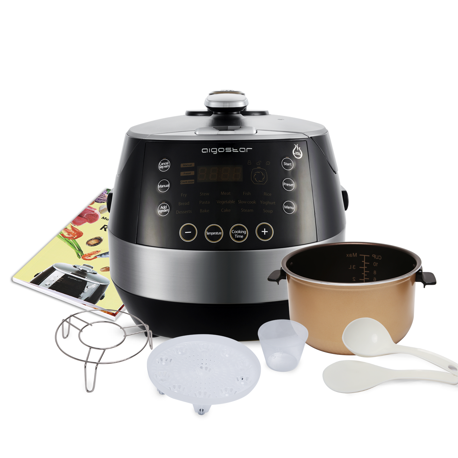 Aigostar Happy Chef 30IWY - pressure multicooker - Zwart|rvs