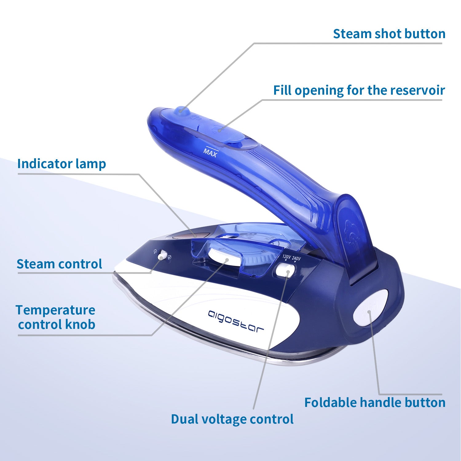 Selecteer de spanning: 110-120V of 220-240V. Dankzij het vermogen van 1100 W heb je binnen enkele minuten kreukvrije kleding.