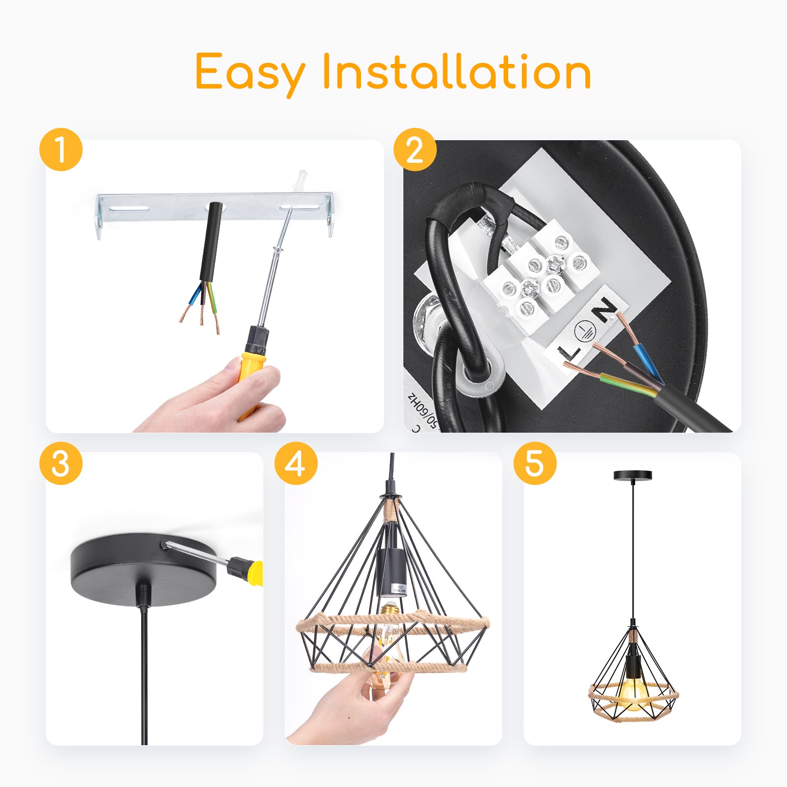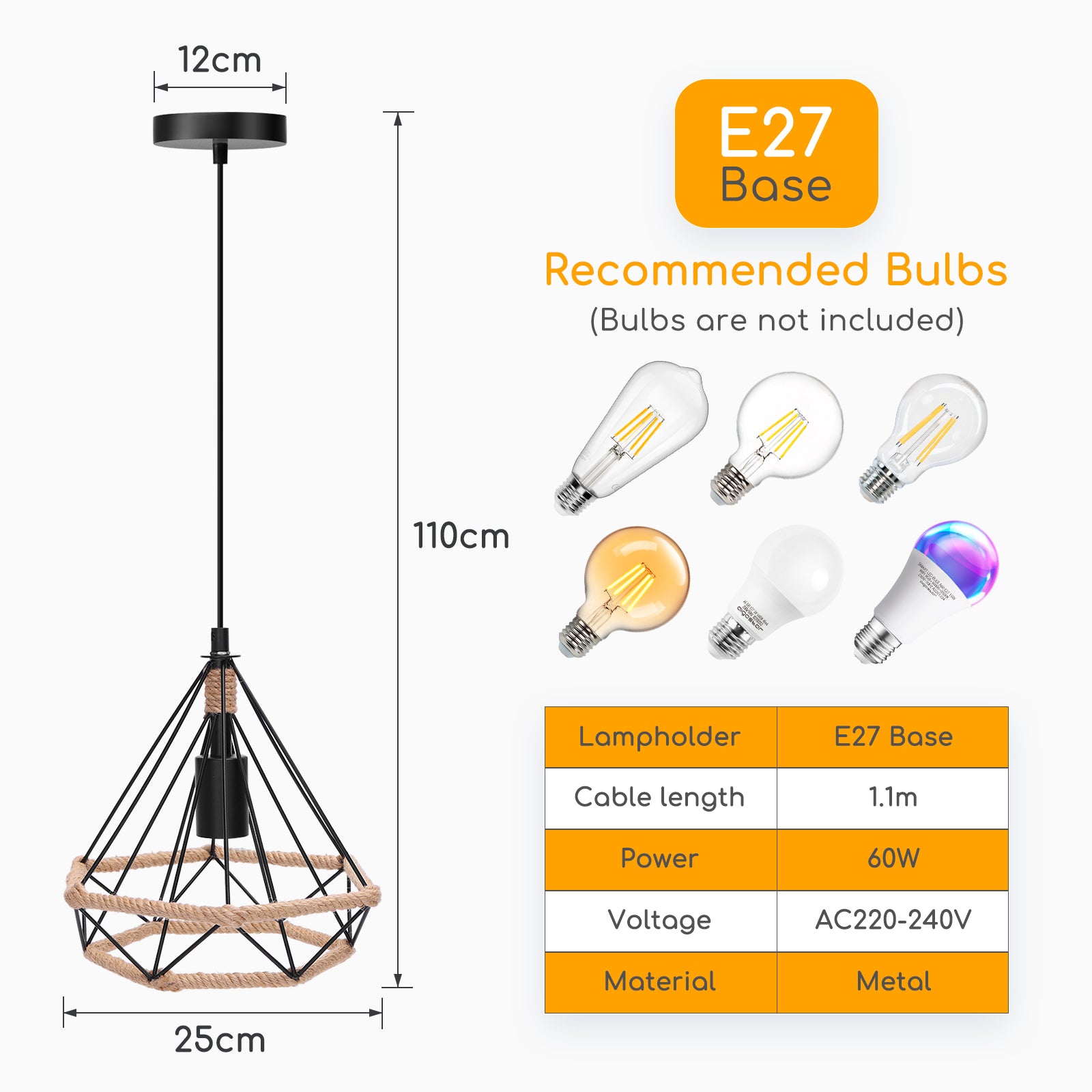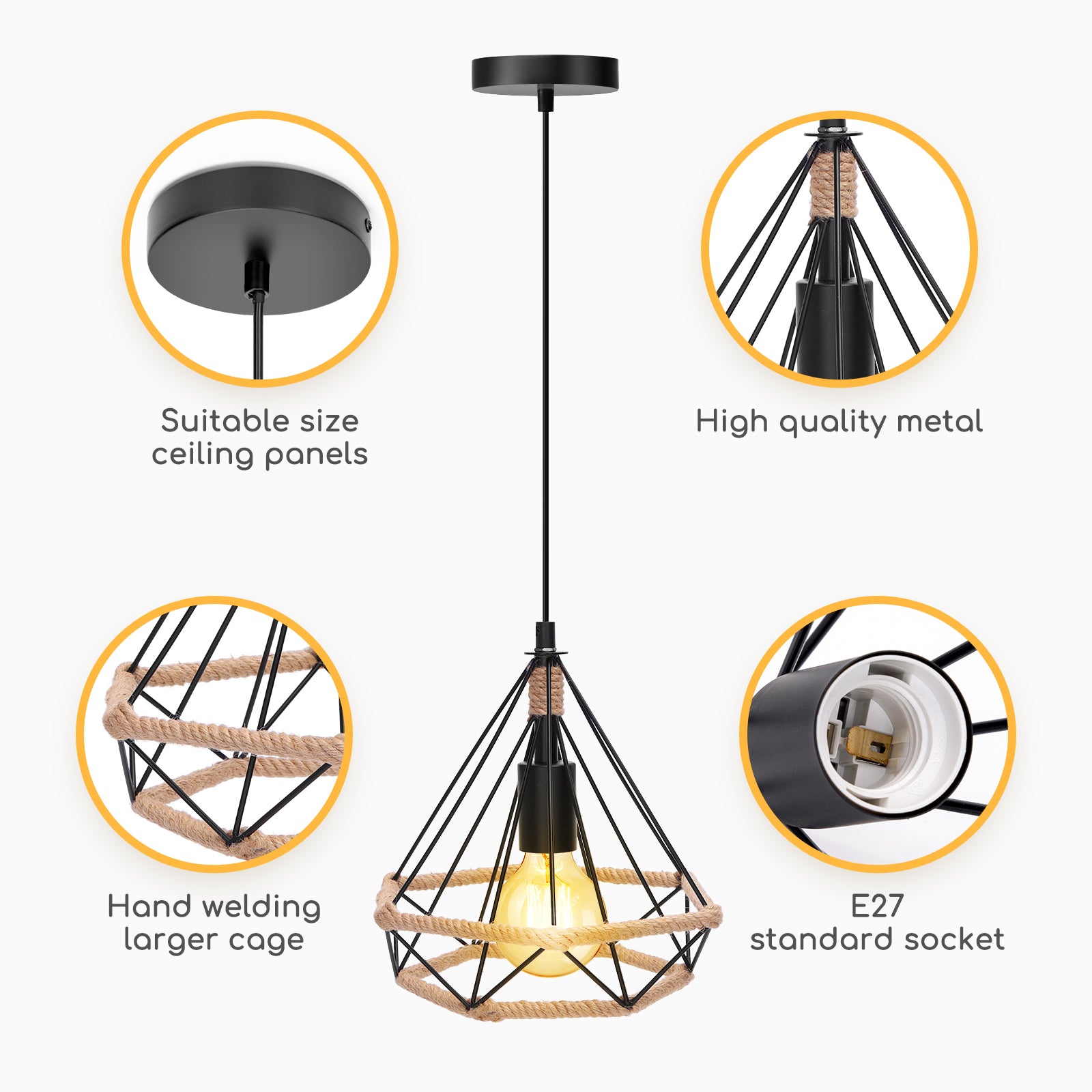 Aigostar Metalen Hanglamp - E27 Fitting - excl.lichtbron - Zwart