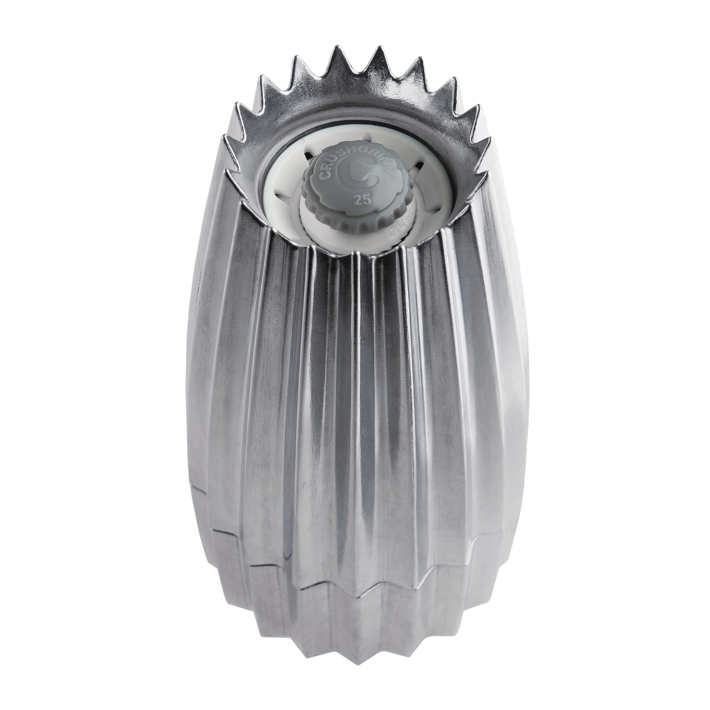 Slim design Kijk eens goed naar het ontwerp van deze molen. Valt je wat op? Goed gezien! De opvallende, verticale ribben op de molen zijn aan de bovenkant veel scherper en aan de onderkant, de kant waar je aan draait, veel zachter. Zo draai je de molen intuïtief om, wanneer je hem wil gebruiken. Slim! Zwaar materiaal De Grind molen is gemaakt van zwaar gietaluminium. De ontwerpers willen je laten stilstaan bij het belang van genieten van lekker eten. Omdat de molen zo zwaar is, voel je dat je iets belangrijks van goede kwaliteit in handen hebt. Iets belangrijks, om jouw maaltijd mee op smaak te brengen.