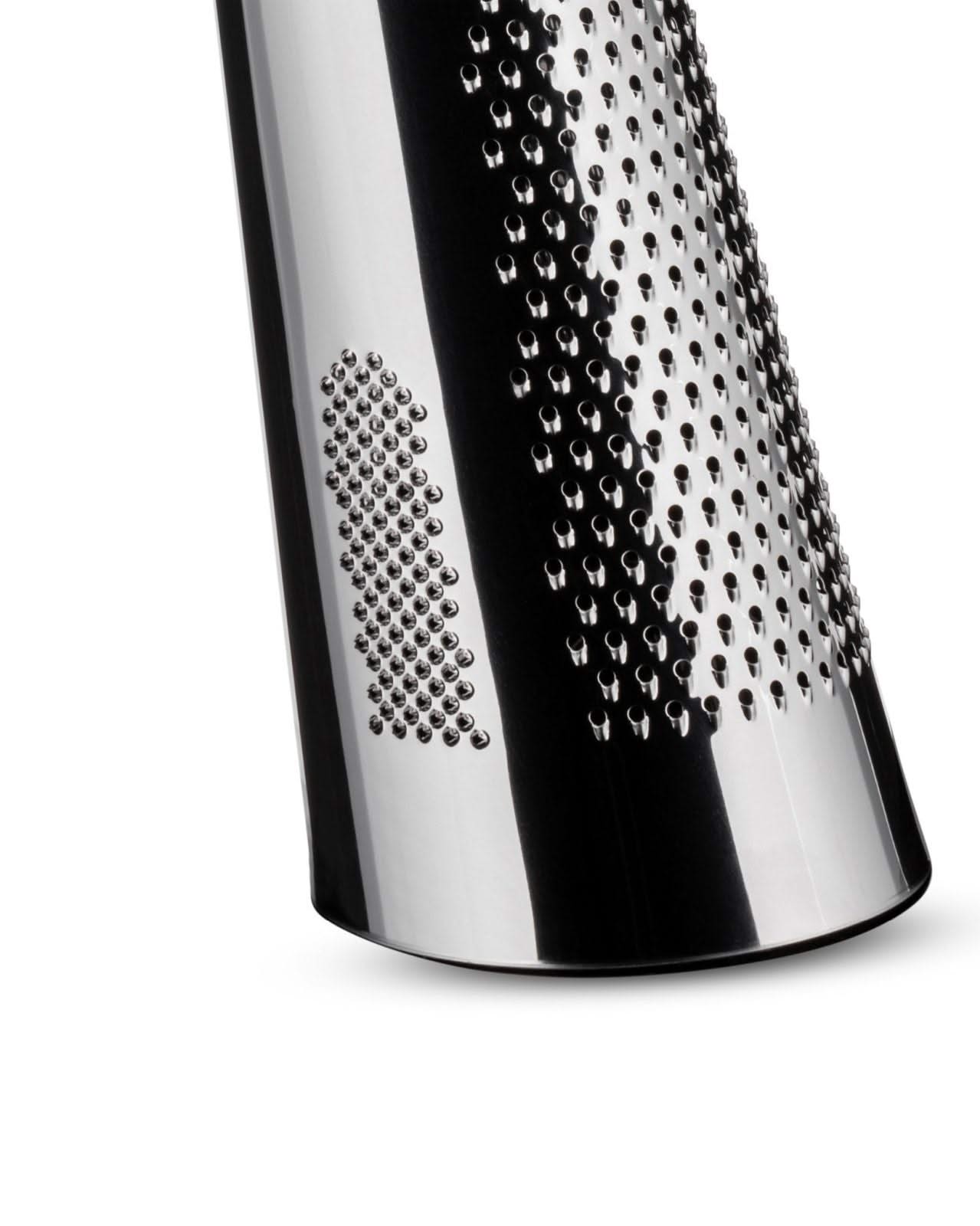 Rasp jouw stukje kaas of nootmuskaat in stijl met deze Alessi kaas ootmuskaat rasp Todo ! Deze opvallende rasp is maar liefst 46 cm hoog en een echte eyecather in jouw keuken of op jouw tafel. De rasp is gemaakt van staal en heeft een houten handgreep. Doordat de Alessi kaas ootmuskaat rasp Todo zo groot is, is die fijn in gebruik en rasp je meteen een grote hoeveelheid kaas. Voordelen van de Alessi Kaasrasp / Nootmuskaatrasp Todo - RS08 - door Richard Sapper