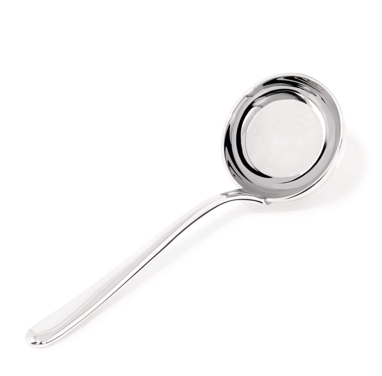 Serveer je sauzen in stijl met de Alessi Sauslepel Caccia. Deze elegante lepel, ontworpen door Luigi Caccia Dominioni, combineert ambachtelijk design met duurzaamheid en is een tijdloze toevoeging aan elke tafelsetting.