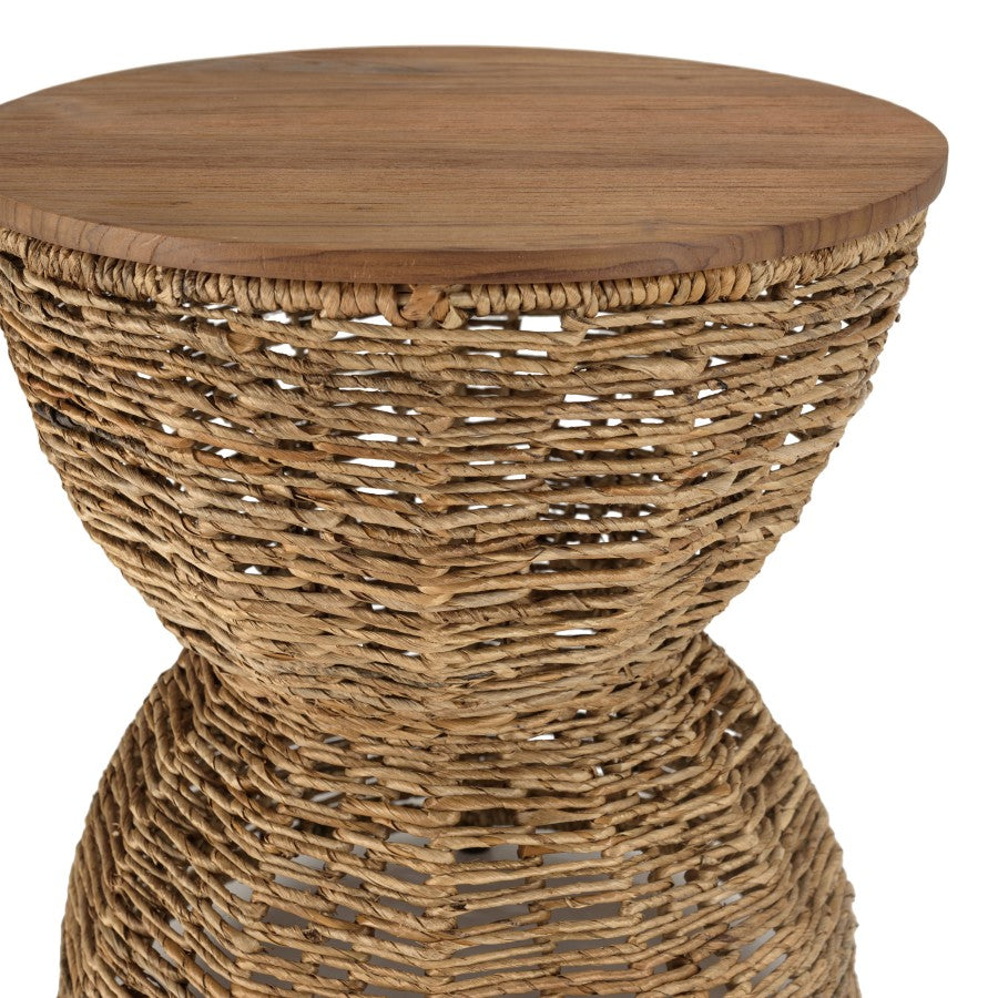 ALIDA - Tabouret marron assise en bois de teck recyclé