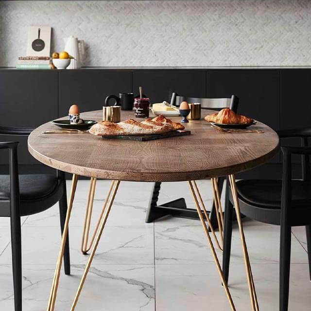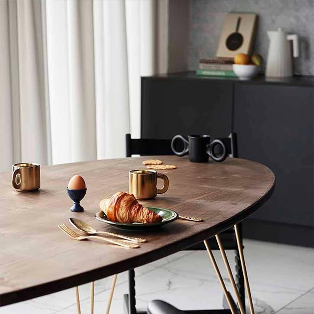 Duurzame materialen De tafel ziet er niet alleen supermooi uit, er is ook aan het milieu gedacht. De poten zijn gemaakt van gerecycled staal en het dennenhouten tafelblad is gemaakt van hout uit duurzaam beheerde Deense bossen.