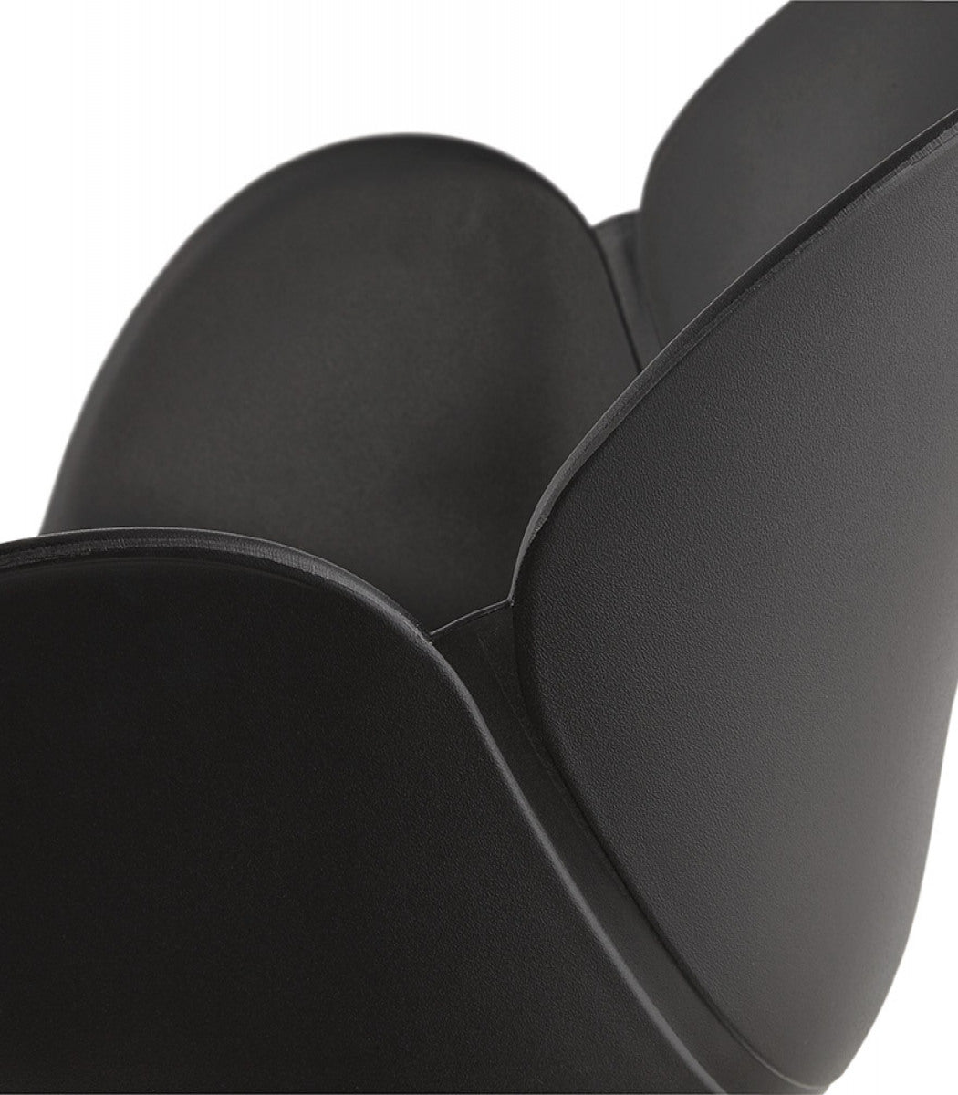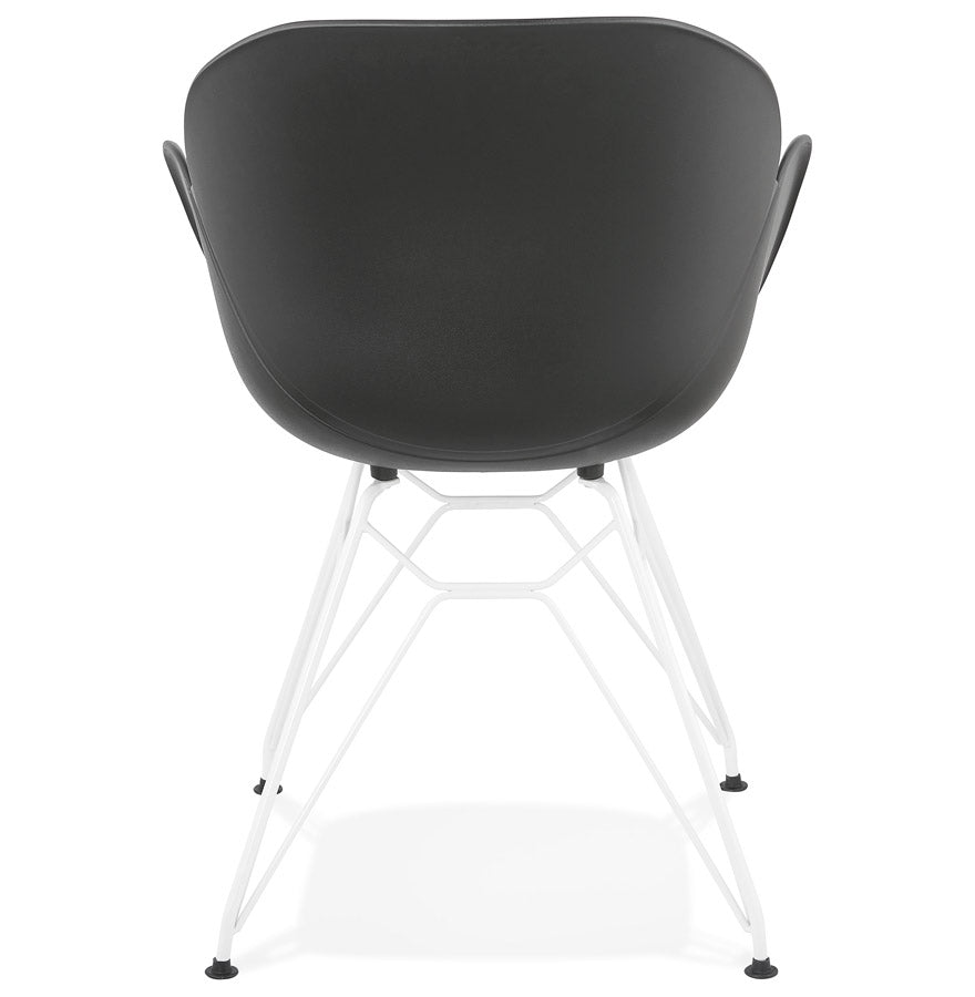 Zwarte designstoel met industriële stijl poot in wit metaal voor binnen en buiten.