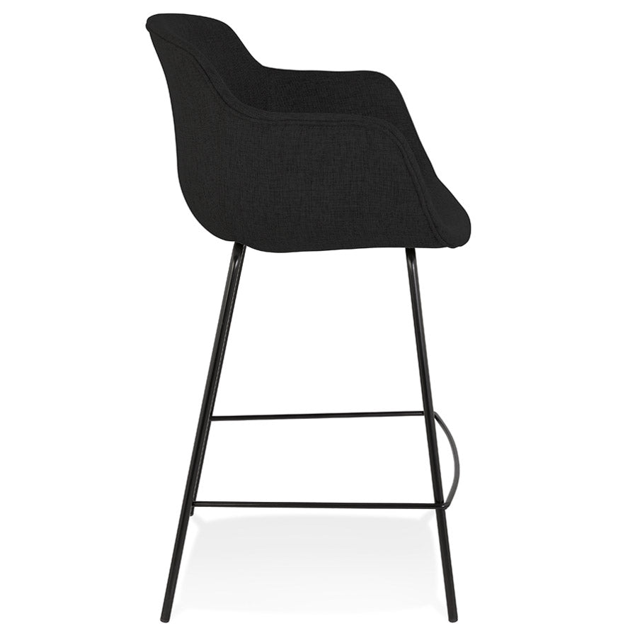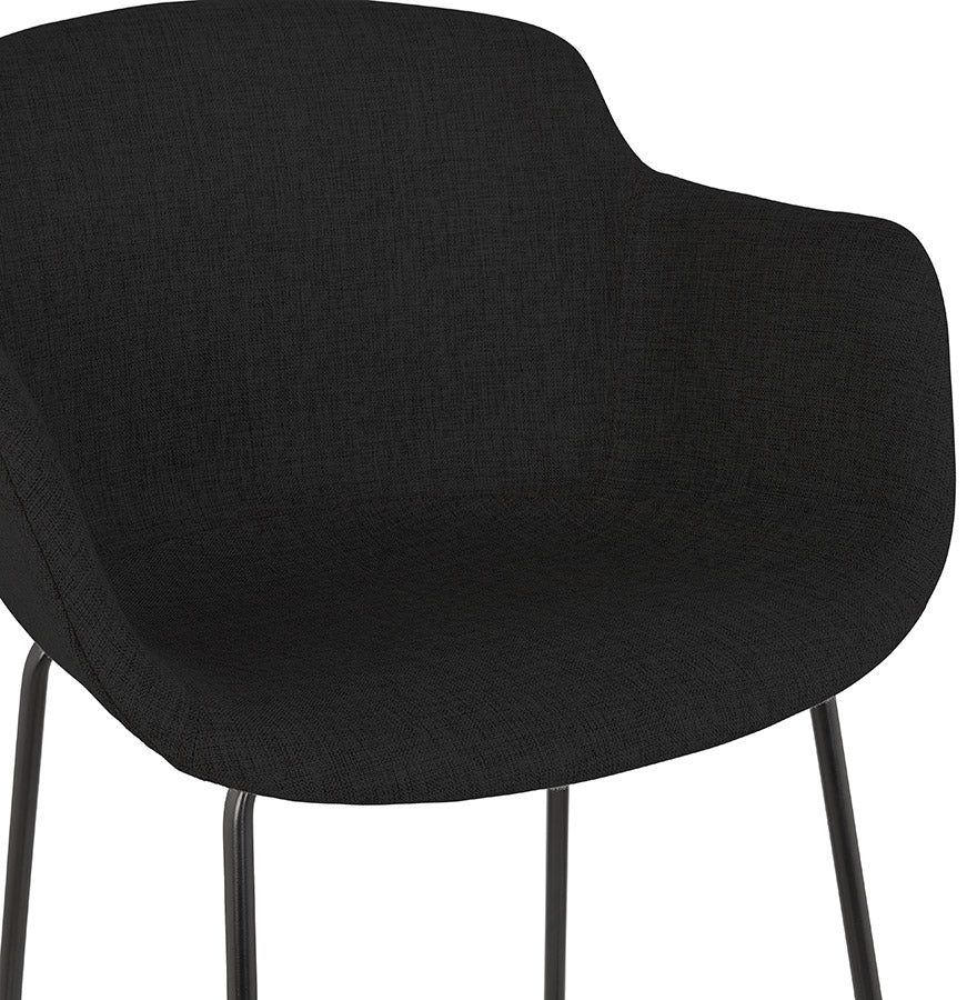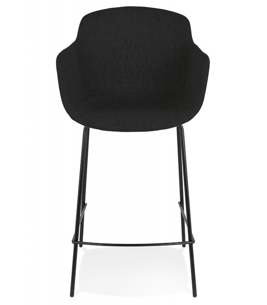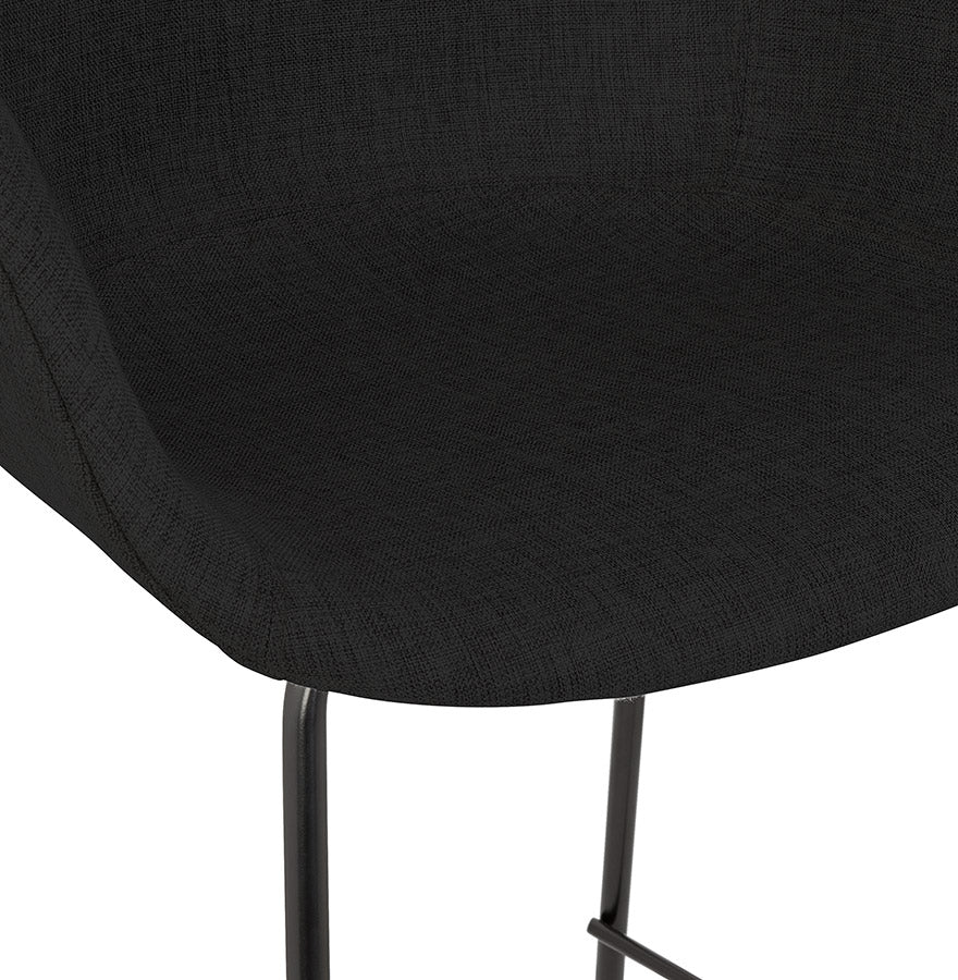 Middelhoge snackkruk 'FORTI MINI' in zwarte stof - Comfort en vintage elegantie! Trakteer uzelf op comfort en retrostijl met de snackkruk 'FORTI MINI'! De gecapitonneerde zitting met armleuningen, bekleed met een elegante zwarte stof, biedt u een aangename zitplaats om ten volle te genieten van uw gezellige momenten. De sobere zwarte metalen structuur geeft hem een chique en tijdloze uitstraling die perfect past in uw keukenbar. Laat u verleiden door het ontwerp geïnspireerd op vintage stijl dat een warme en gezellige toets aan uw interieur zal geven. Ideaal voor het hele gezin of om je vrienden te verwelkomen met een drankje, de kruk 'FORTI MINI' zal snel een must-have worden in je keuken. Sterke punten :- Comfortabele stoel met armleuningen en hoogwaardige vulling- Robuuste en elegante zwarte metalen structuur- Vintage design voor een warme touch- Zithoogte: 65 cm - Perfect voor bars van 85 tot 95 cm hoog- Makkelijk te onderhouden Wacht niet langer en laat je betoveren door de tijdloze charme van het snackkrukje 'FORTI MINI'!