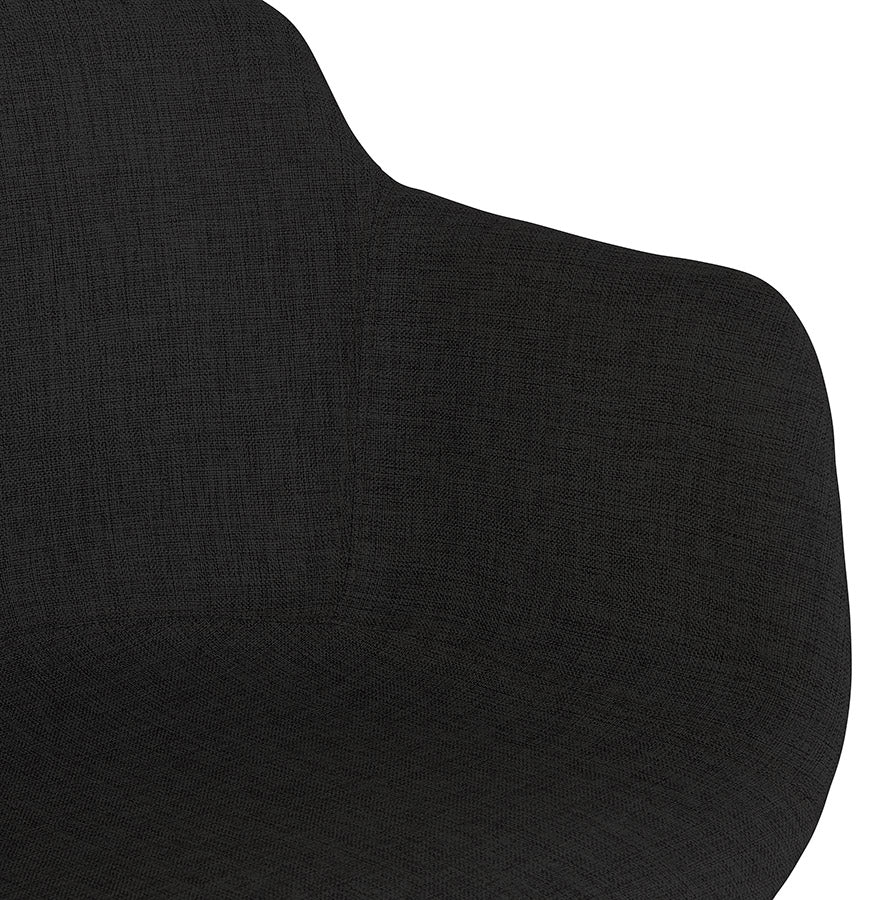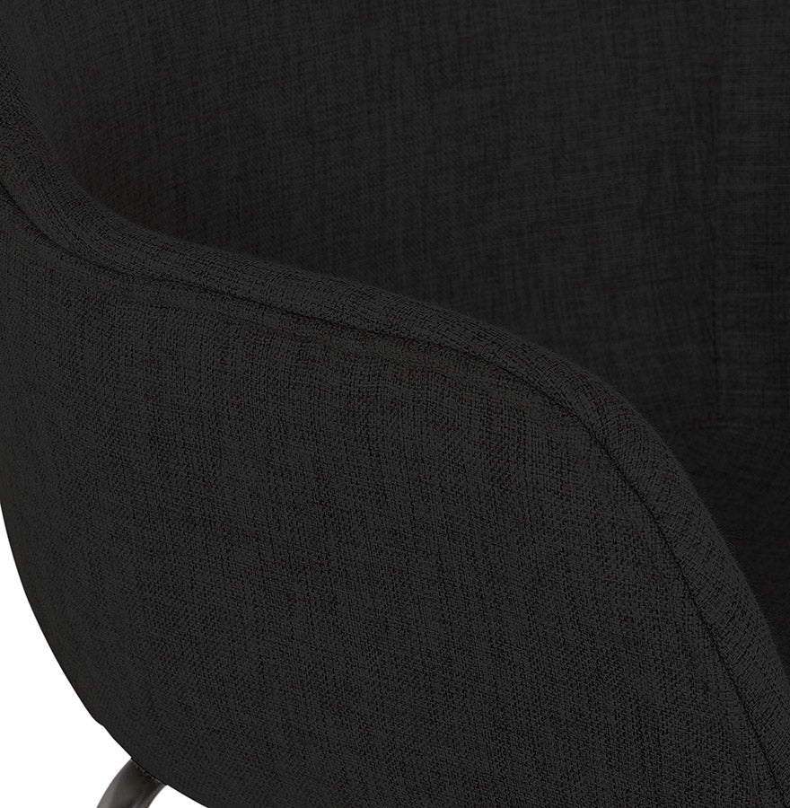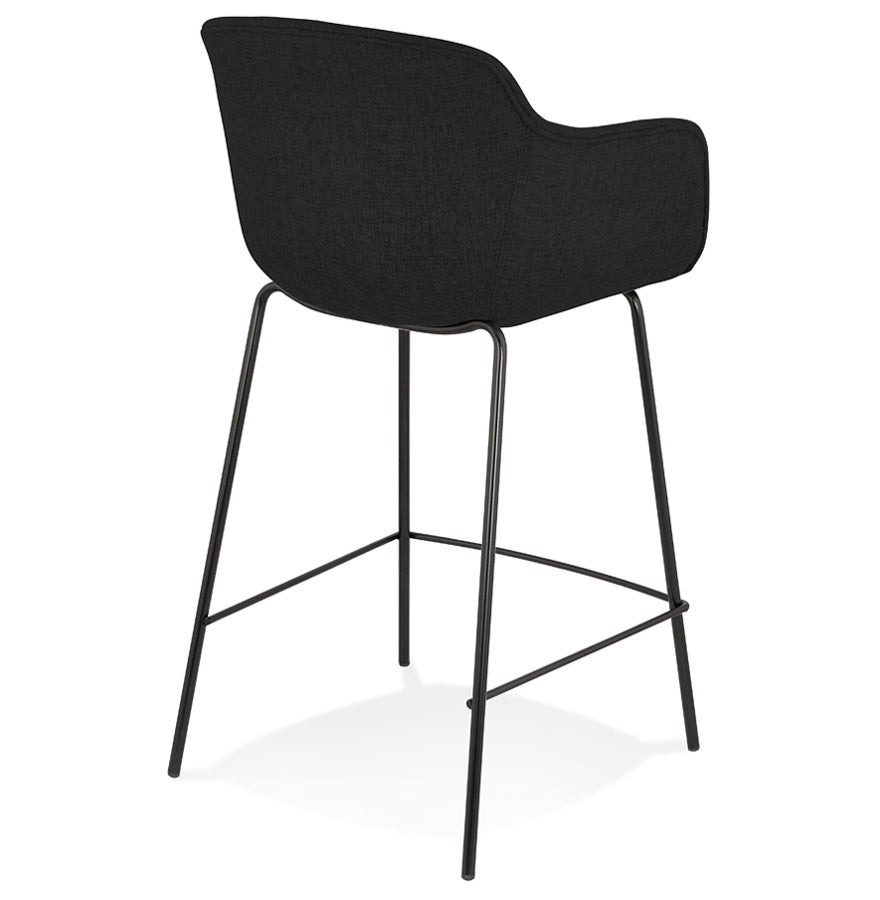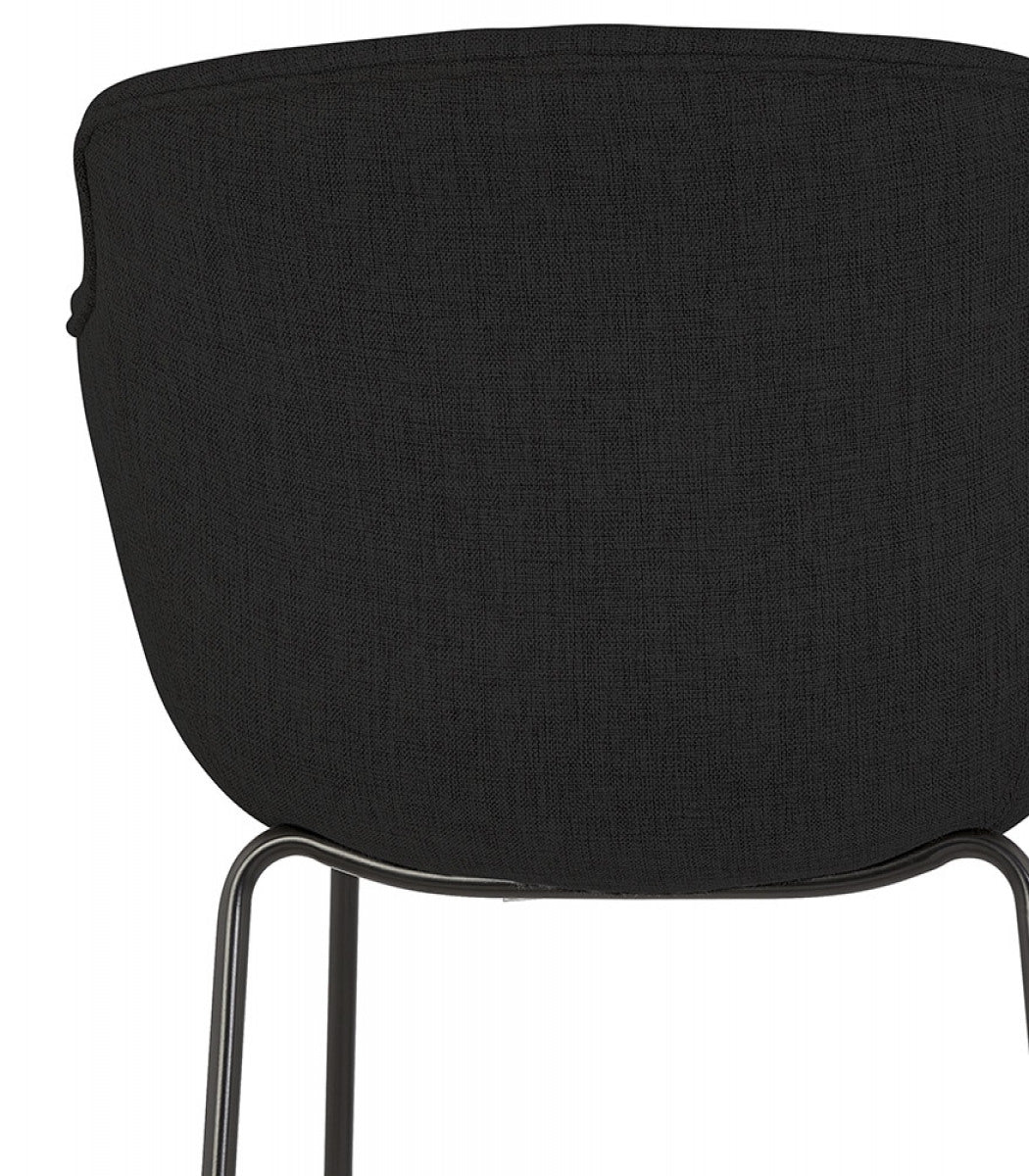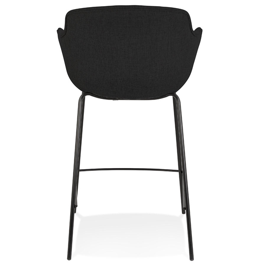 Middelhoge snackkruk 'FORTI MINI' in zwarte stof - Comfort en vintage elegantie! Trakteer uzelf op comfort en retrostijl met de snackkruk 'FORTI MINI'! De gecapitonneerde zitting met armleuningen, bekleed met een elegante zwarte stof, biedt u een aangename zitplaats om ten volle te genieten van uw gezellige momenten. De sobere zwarte metalen structuur geeft hem een chique en tijdloze uitstraling die perfect past in uw keukenbar. Laat u verleiden door het ontwerp geïnspireerd op vintage stijl dat een warme en gezellige toets aan uw interieur zal geven. Ideaal voor het hele gezin of om je vrienden te verwelkomen met een drankje, de kruk 'FORTI MINI' zal snel een must-have worden in je keuken. Sterke punten :- Comfortabele stoel met armleuningen en hoogwaardige vulling- Robuuste en elegante zwarte metalen structuur- Vintage design voor een warme touch- Zithoogte: 65 cm - Perfect voor bars van 85 tot 95 cm hoog- Makkelijk te onderhouden Wacht niet langer en laat je betoveren door de tijdloze charme van het snackkrukje 'FORTI MINI'!