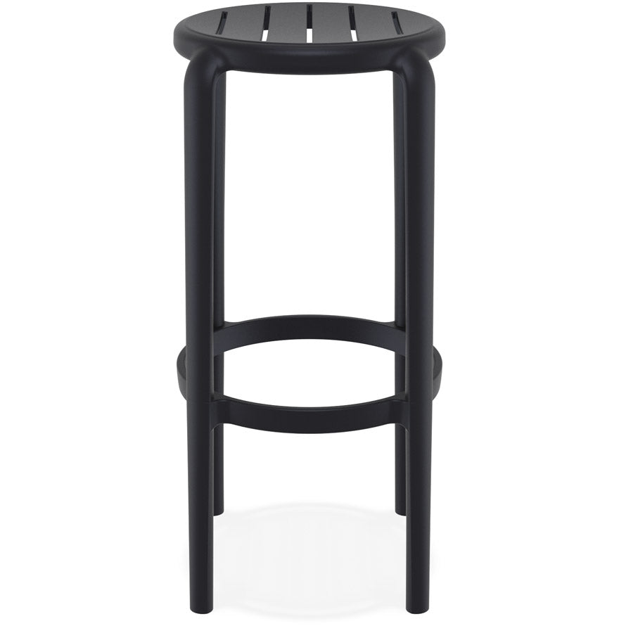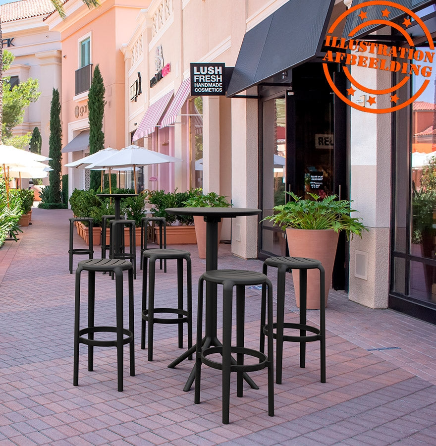 Met de zwarte kunststof binnen-/buitenbarkruk 'PEYA' kunt u samen met uw dierbaren genieten van mooie momenten van gezelligheid.