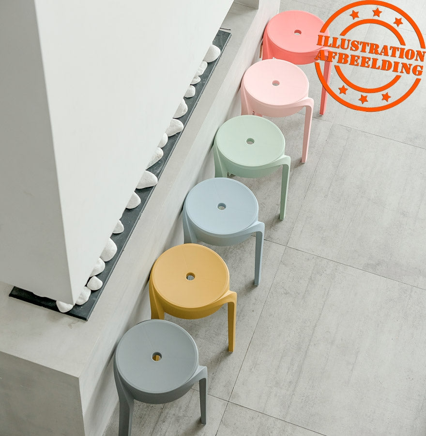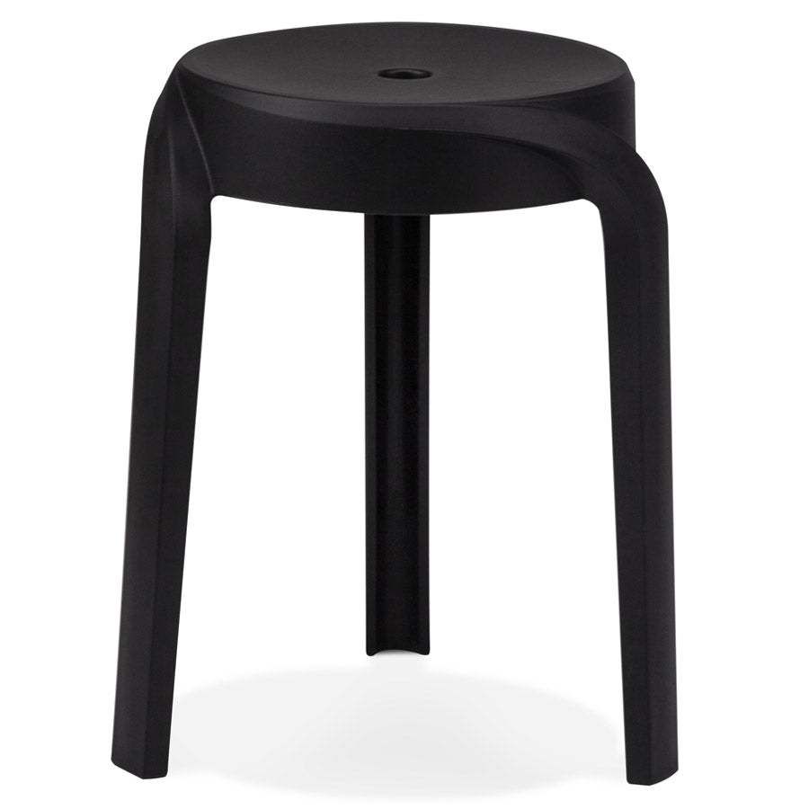De lage stapelbare kruk 'POMPA' van zwart plastic past gemakkelijk in uw ruimte voor een vleugje moderniteit.