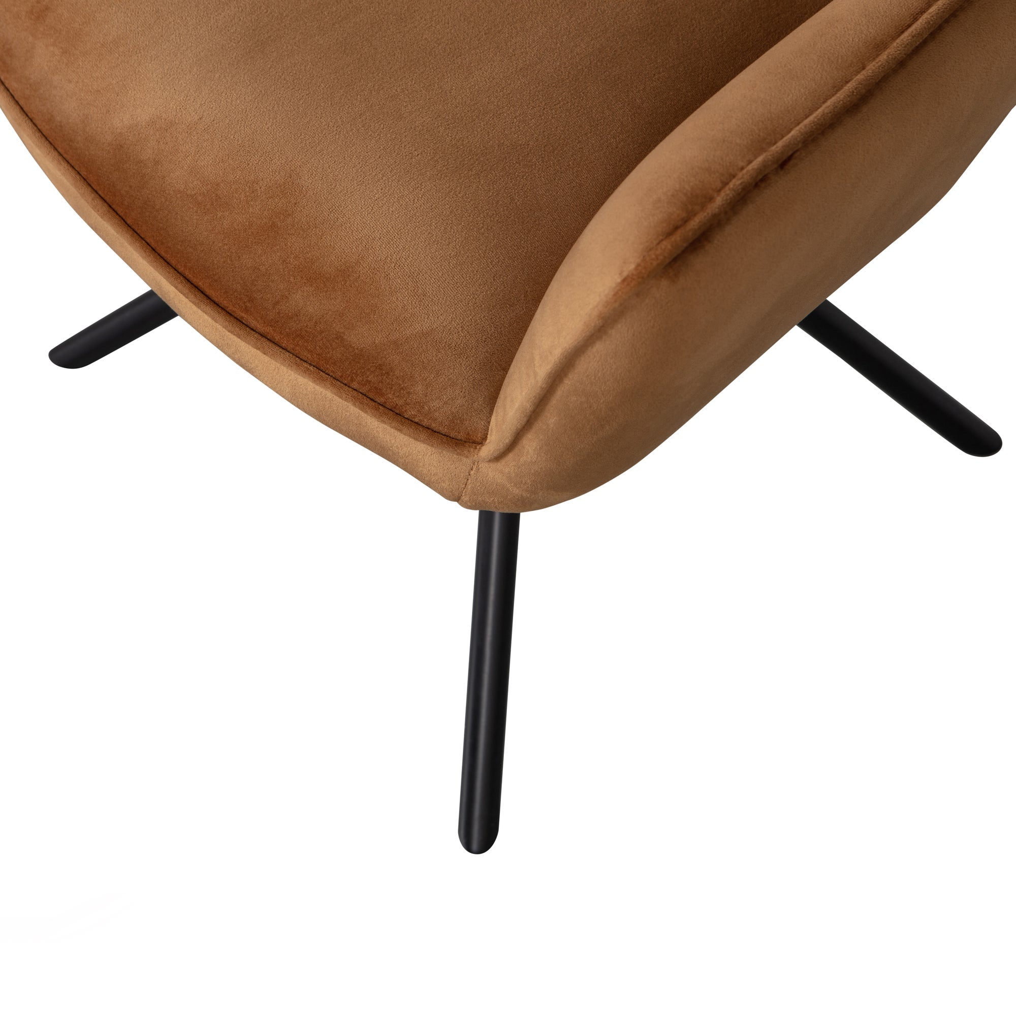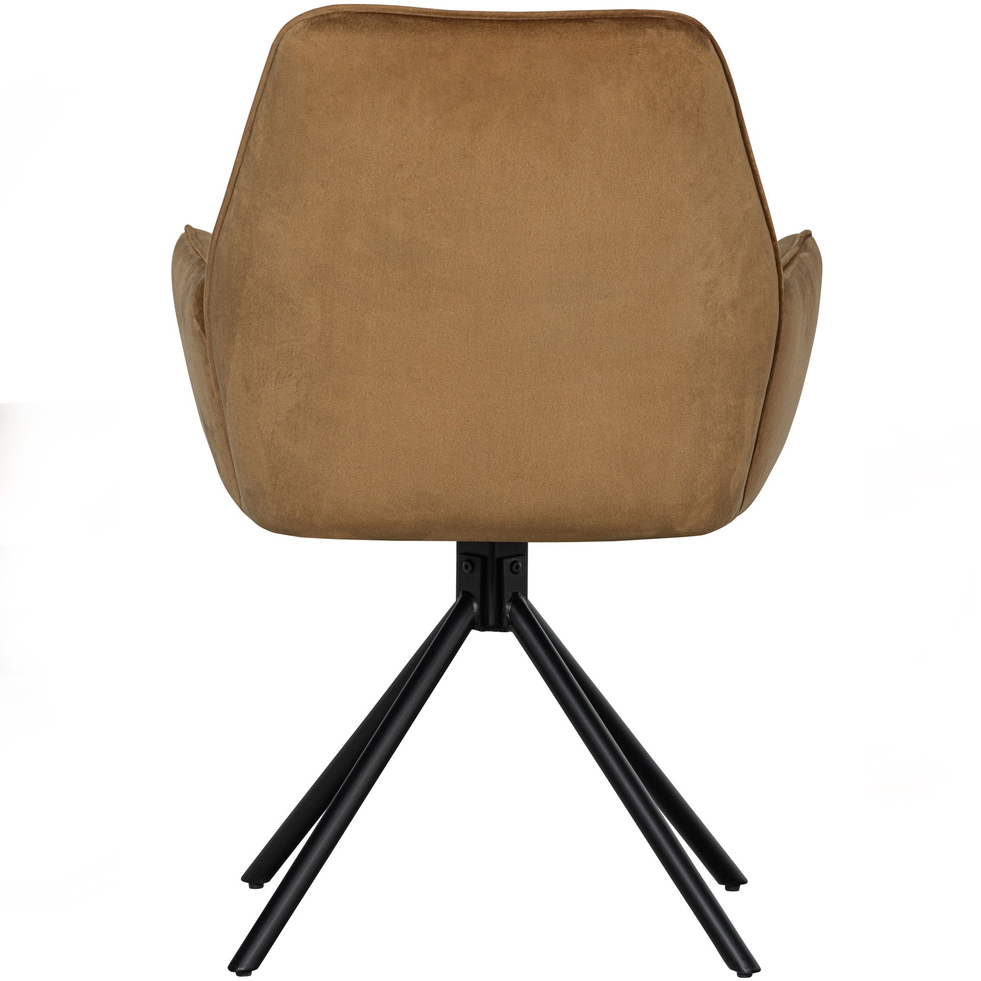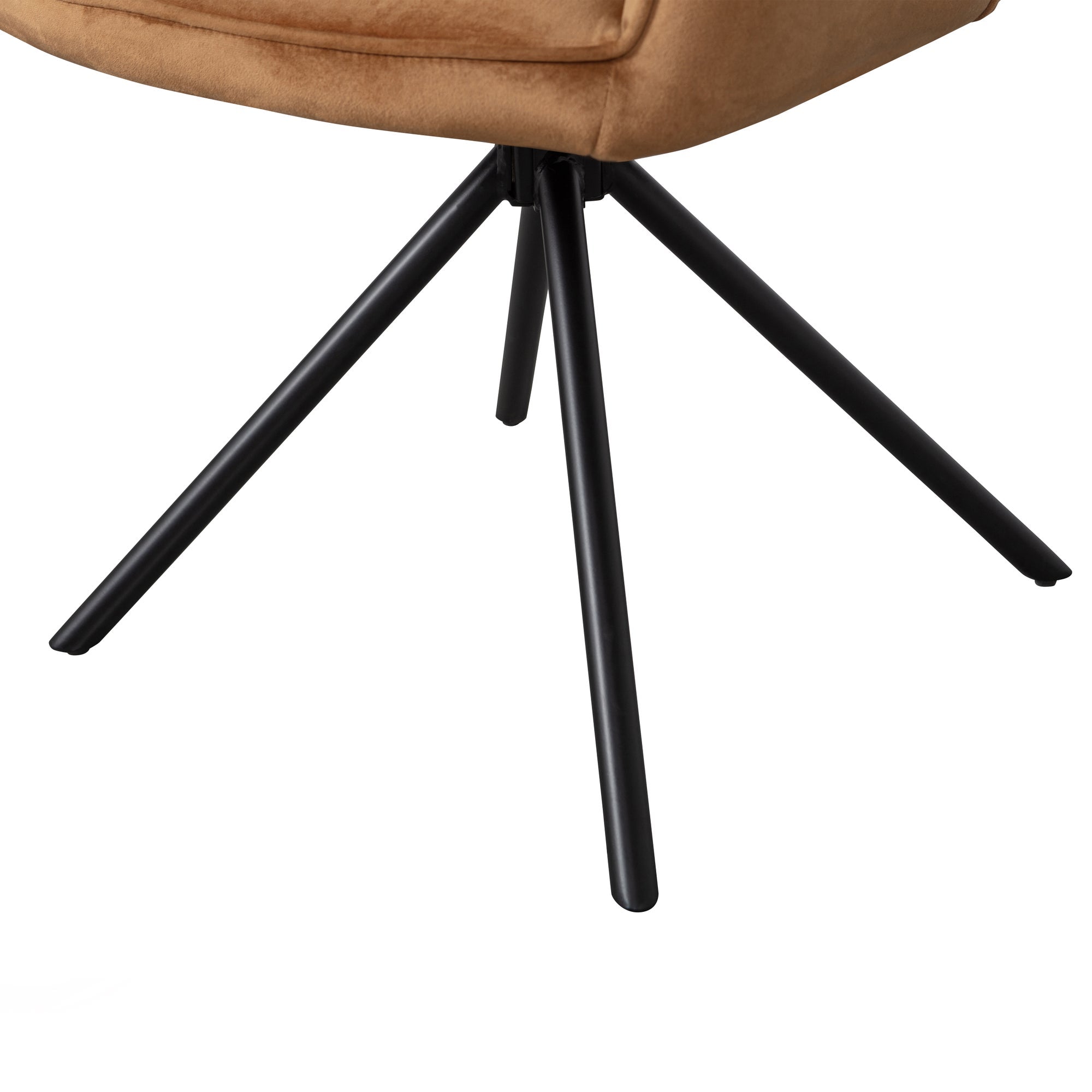De rug en zitting van de stoel zijn bekleed met een velvet stof van 100% polyester, Martindale 20.000. Het onderstel en de vierpoot zijn vervaardigd van stalen buis, afgewerkt met een mat zwarte poedercoating. Levering