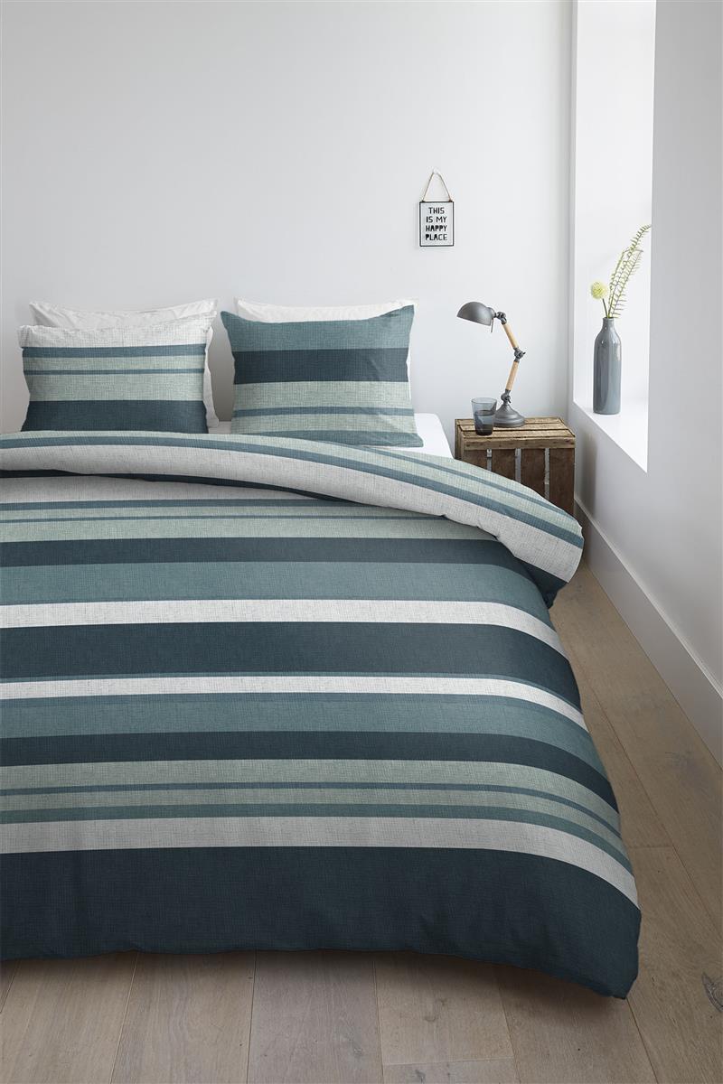 Dekbedovertrek Dani van Ambiante heeft een landelijk en tijdloos dessin met horizontale strepen. Het overtrek heeft smalle en brede strepen in frisse blauwe kleuren. De print heeft een grove weefselstructuur. De kussenslopen hebben elk een ander dessin in dezelfde opvallende kleuren. Dit geeft het overtrek een speels effect.