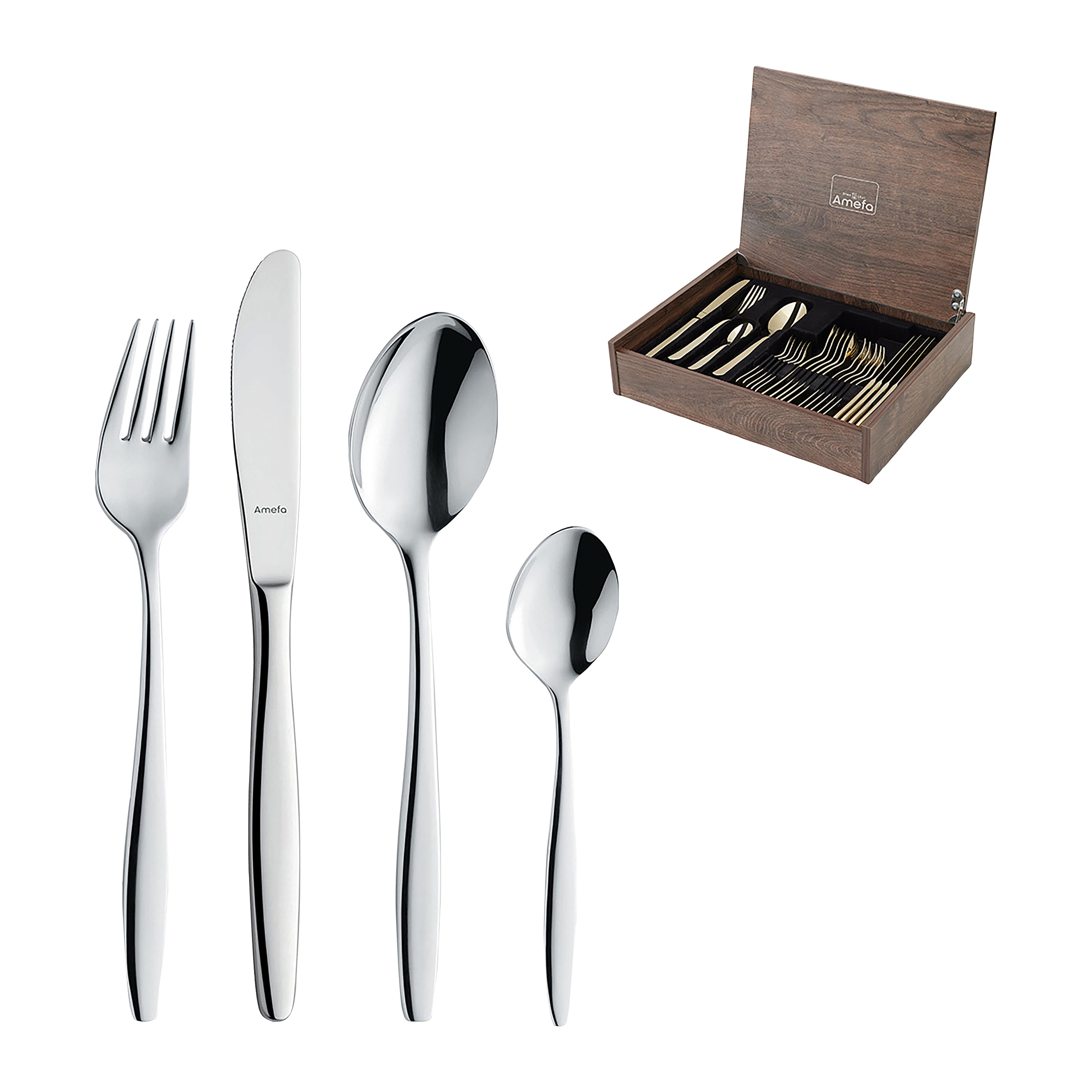 Bij Amefa is dineren meer dan alleen het consumeren van voedsel: het is een beleving waar aandacht aan geschonken moet worden. Amefa in 1931 opgericht door Eugen Hollaender als de Apeldoornsche messensfabriek en is sindsdien uitgegroeid tot een van de grootste leveranciers van tafel- en keukenbestek in Europa. Het assortiment van Amefa bestaat uit functioneel bestek met een prachtig en eigentijds ontwerp.