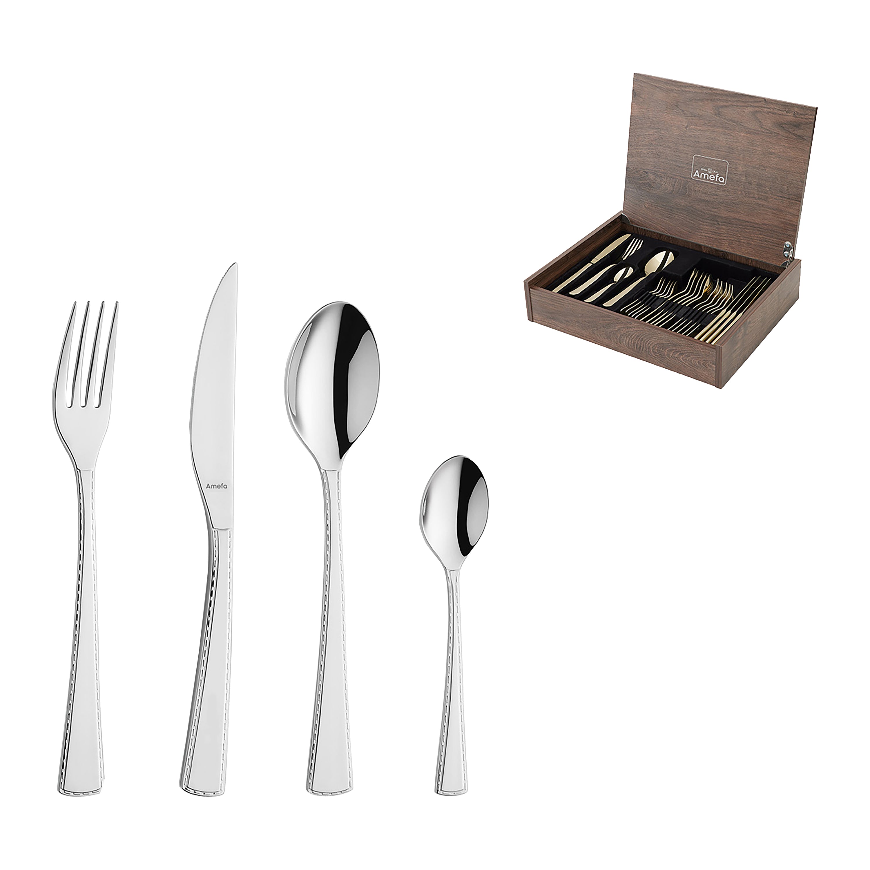 • 6 Tafelmessen • 6 Tafelvorken • 6 Tafellepels • 6 Koffielepels