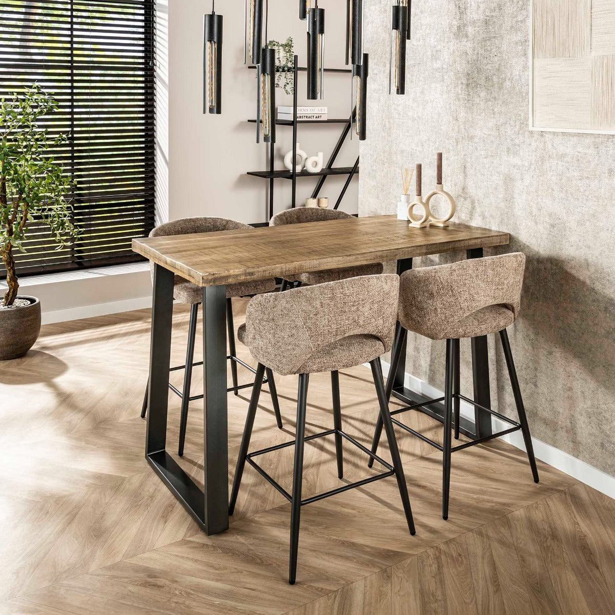 De comfortabele zandkleurige bekleding geeft uw interieur een warme en uitnodigende uitstraling. De stof voelt zacht aan en voegt een luxe touch toe aan uw bar- of keukenruimte.