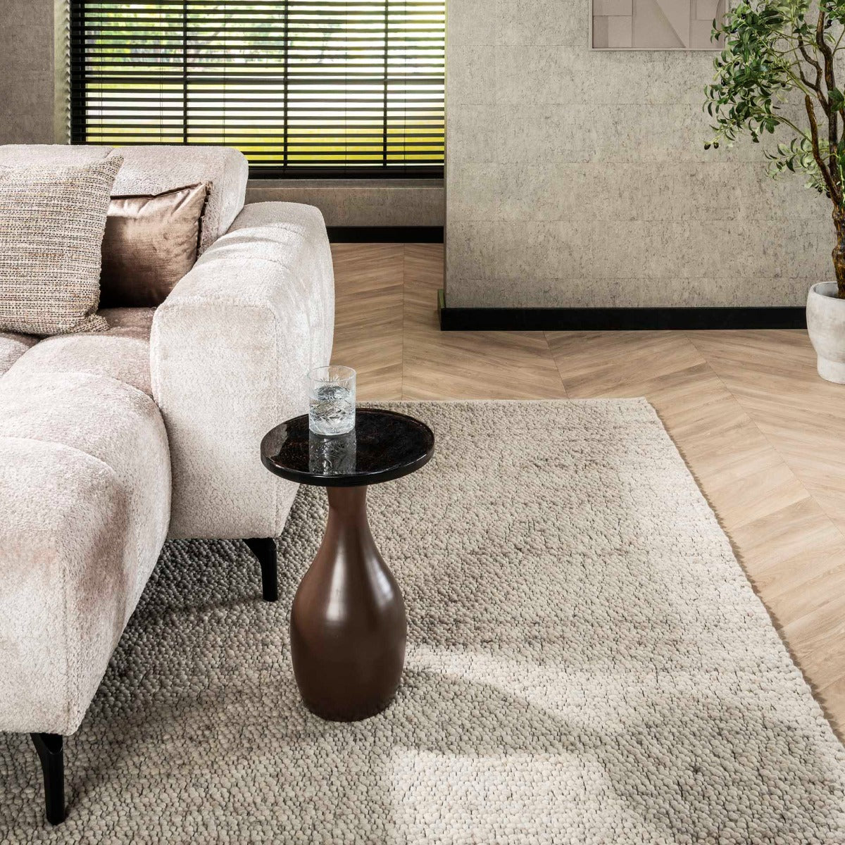Het organische, druppelvormige tafelblad zorgt voor een verrassende twist in je interieur. Deze vorm maakt de tafel niet alleen bijzonder om te zien, maar ook ideaal om speels te combineren met andere vormen en meubels.Warme koperkleur geeft een luxe look