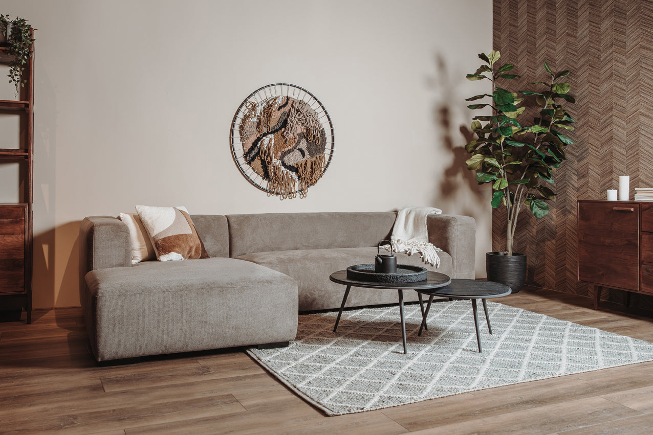 De Glasgow bank is uitgerust met een 2,5-zits zitgedeelte en een linker chaise longue, wat zorgt voor een royale en comfortabele zitplek. Ideaal voor het creëren van een ontspannen hoek in je woonkamer.